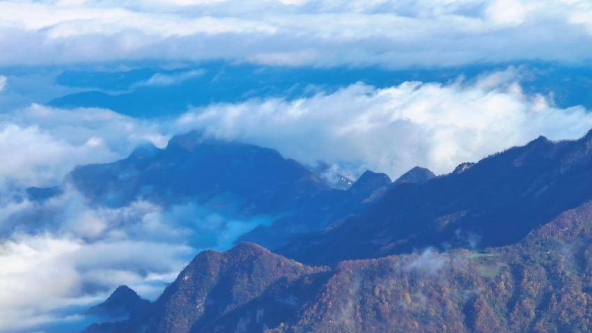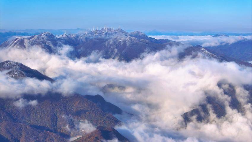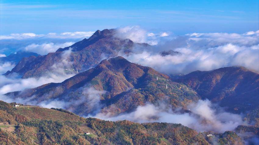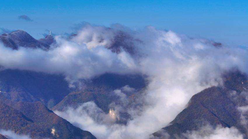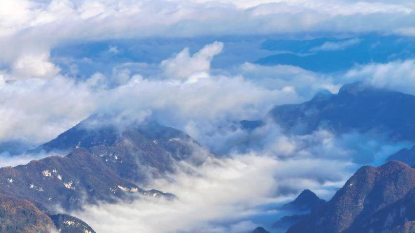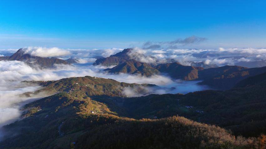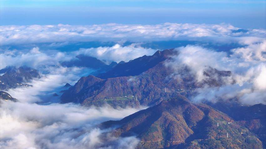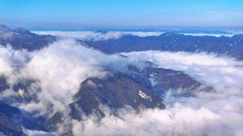 蓝天如镜、白云如海、青山如黛,共同描绘出这幅秀美的深山云海图,屏气凝神细细欣赏,唯恐一不小心就破坏了这美妙的意境。(湖北日报客户端通讯员 马维平 刘玉锋 郭朝全 摄)