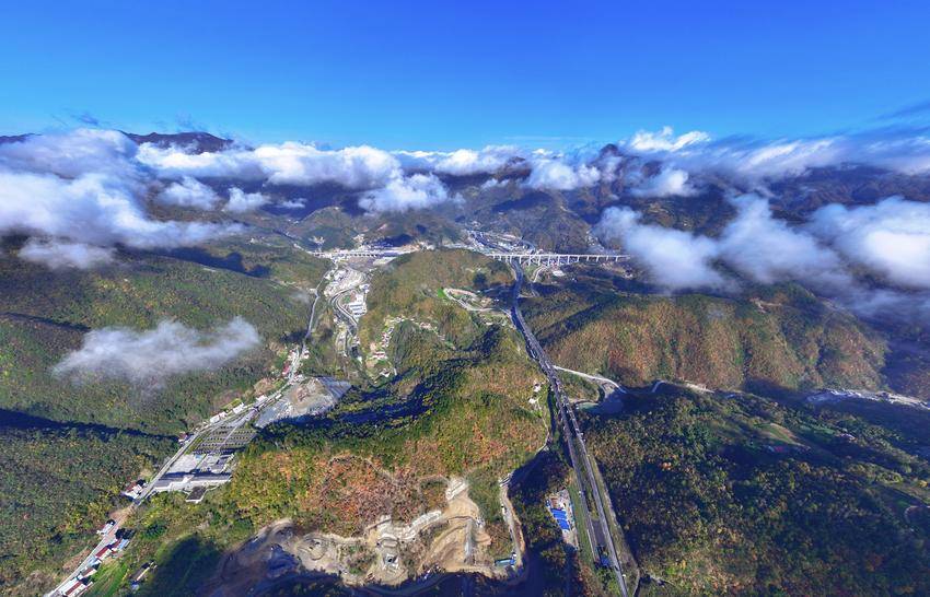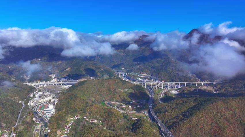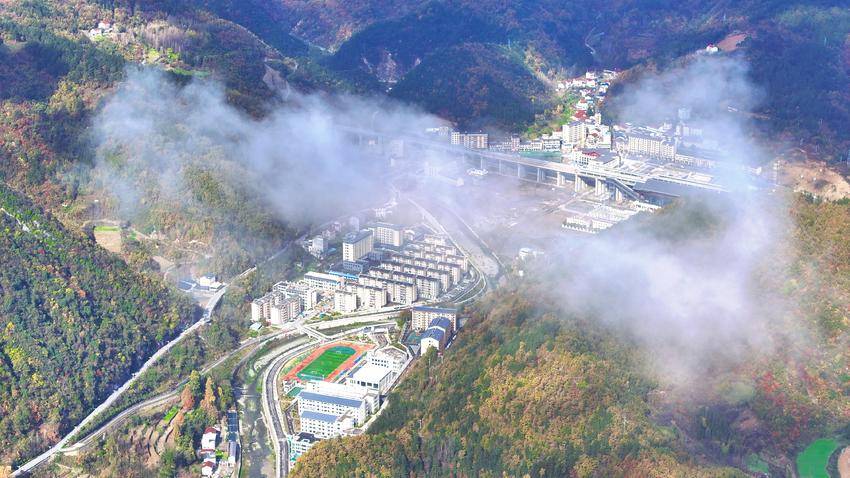 雾气蒸腾,一座造型独特、规划齐整的高铁小镇在暖阳映照下熠熠生辉,四通八达的高速高铁路线在深山中穿行,运载着山里人的诗与远方。