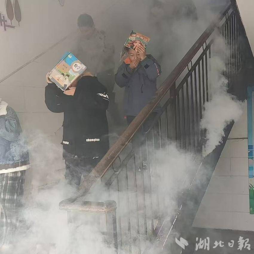 上午10时许,随着一阵急促而尖锐的警报声响起,各班级的学生们在老师的组织下,用湿毛巾捂住口鼻,弯腰低姿迅速而有序地向室外疏散。整个疏散过程有条不紊,全体学生在短时间内安全撤离。