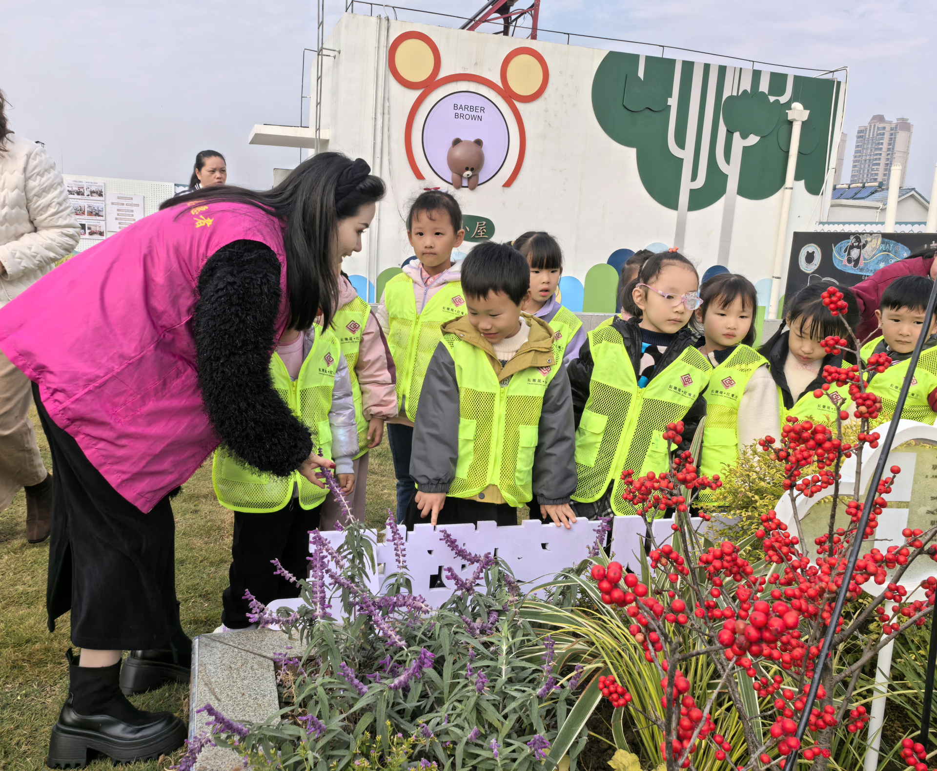 长墩堤社区蓝迪幼儿园24名小朋友受邀参与活动。活动开始,老师带领孩子们来到生机勃勃的空中花园,让他们仔细观察花园的布局与细节,鼓励孩子们思考如何让花园变得更加美丽。