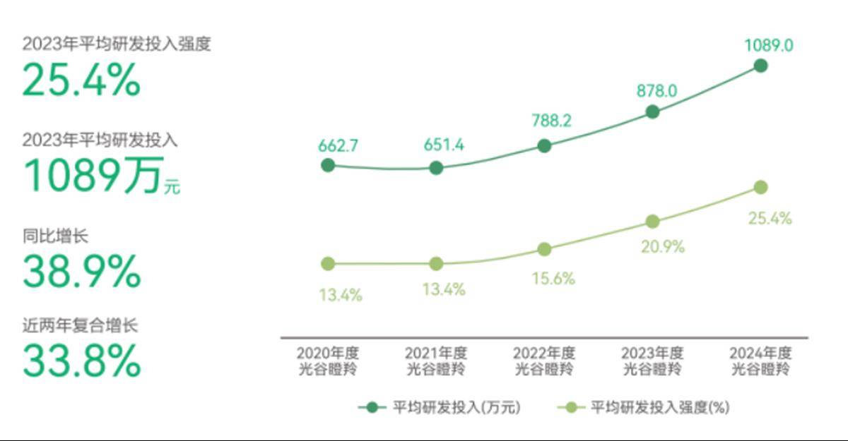 2020-2024年度光谷瞪羚平均研发投入及同比增长情况