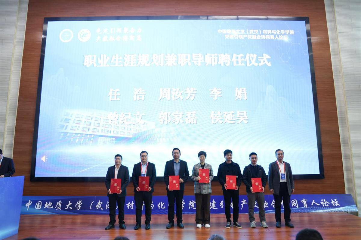 论坛上,中国地质大学(武汉)材料与化学学院新聘任15位行业企业精英分别担任创新创业兼职导师、职业生涯规划兼职导师、校外兼职辅导员。据悉,2024年4月,中国地质大学(武汉)材料与化学学院依托产教融合联盟成立仪式聘任50余名企业专家担任学院创新创业兼职导师、职业生涯规划兼职导师、校外兼职辅导员,并为大一学生配备校外兼职辅导员,充分引入政企等社会资源助力人才培养,将企业育人资源深度融入学院党建思政与实践教育环节。