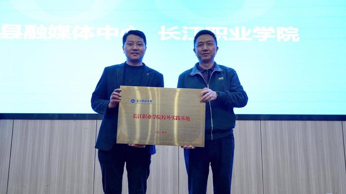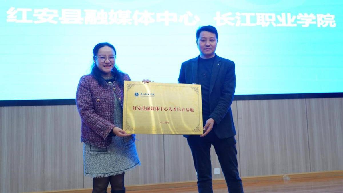 授牌仪式上,黄发成授予长江职业学院为“红安县融媒体人才培养基地”,这既是对学校人才培养质量的充分认可,也预示着双方未来合作的广阔前景。同时,龚谦授予红安县融媒体中心授为“长江职业学院校外实践基地”,这表示着双方将在人才培养、实习实训、就业服务等方面展开更加紧密的合作。