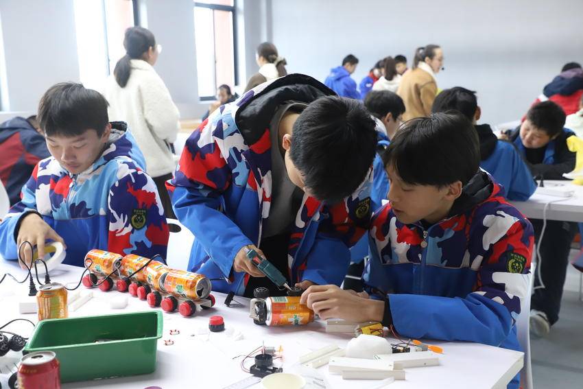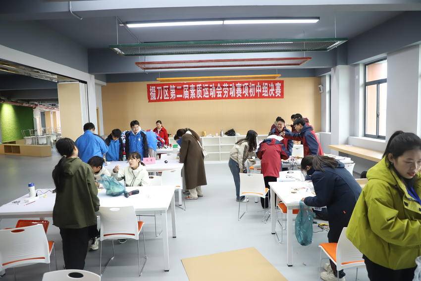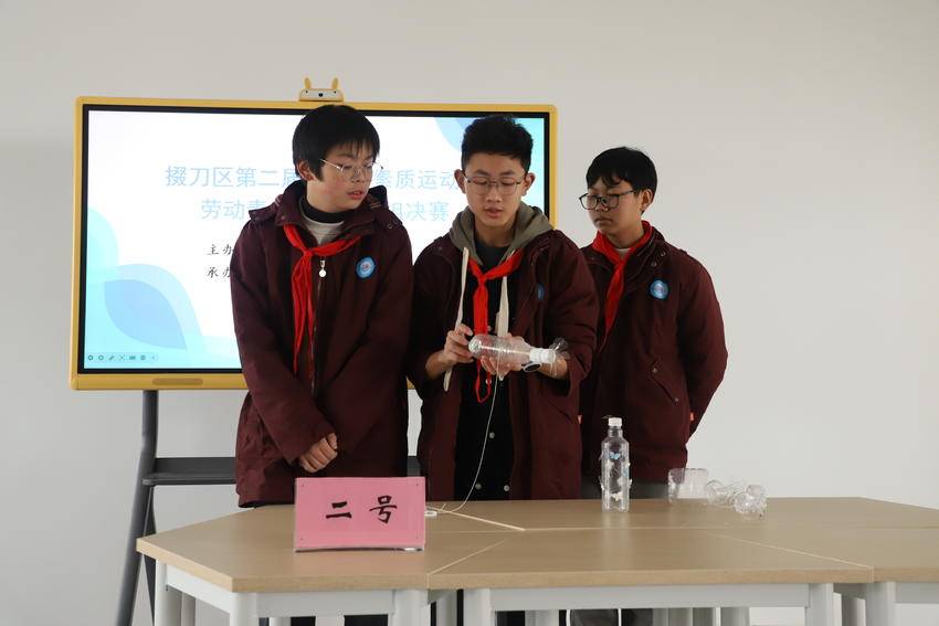 来自全区8所中学的24名参赛选手,围绕软绳梯制作和变废为宝两大比赛项目展开激烈角逐,用双手展现劳动之美,以智慧点亮素质之光。