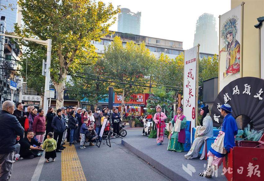 11月29日,武汉汉剧院走进武汉戏码头文化街头,为江汉区北湖街道环保和正街等社区居民表演非遗传统汉剧《货郎背妻》和《柜中缘》,吸引众多居民驻足观赏。(视界网 李长林 摄)