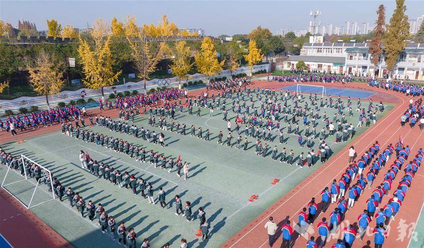 12月2日,随着下课铃声响起,襄阳市昭明小学的上午30分钟大课间开启,1800余名同学先后奔向运动场,在广播声中,学生们依次完成花样跑操、分班级运动项目、拉伸放松等各个运动项目。今年以来,襄阳市各所中小学全面开展“阳光课间 活力校园”专项行动,引导中小学生走出教室、走向操场、走进阳光,让学生“动”起来,让校园“活”起来,切实保证中小学生每天1个小时校内体育活动。(视界网 杨东 摄)