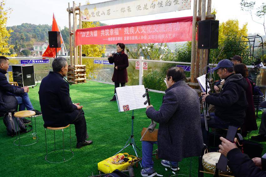 湖北日报客户端讯(通讯员 李玉洁 )为进一步提升残疾人文化艺术水平,丰富精神文化生活,促进文化文艺交流,提升幸福感,11月27日,宜都市肢残人协会、宜都市残疾人艺术协会联合宜昌市残疾人文学艺术协会梅园春京剧社,开展了“以艺为媒 共筑幸福”残疾人文化交流活动,来自宜昌、宜都的50余名残疾人及家属参加活动。