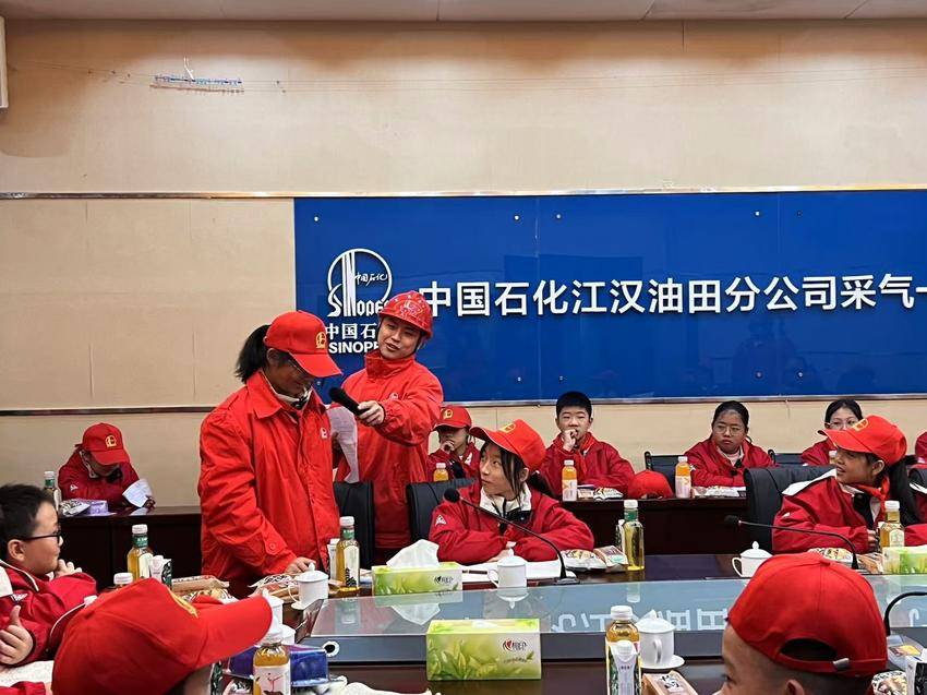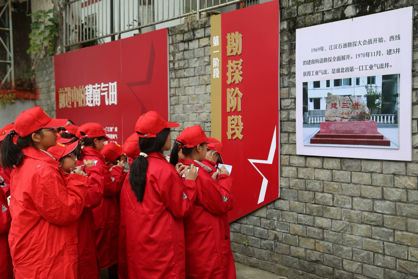 小朋友们在采气一厂文化墙前了解了建南气田发展历程,采气一站安航苇向师生们介绍了建南气田的勘探开发历史,宣讲了“敬业、奉献、和谐、进取”的企业文化精神。