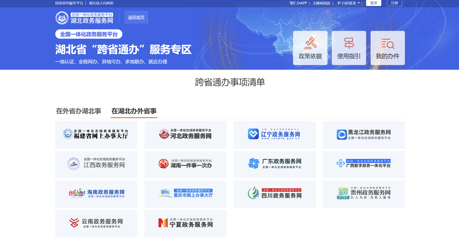 湖北政务服务网在湖北办外省事界面