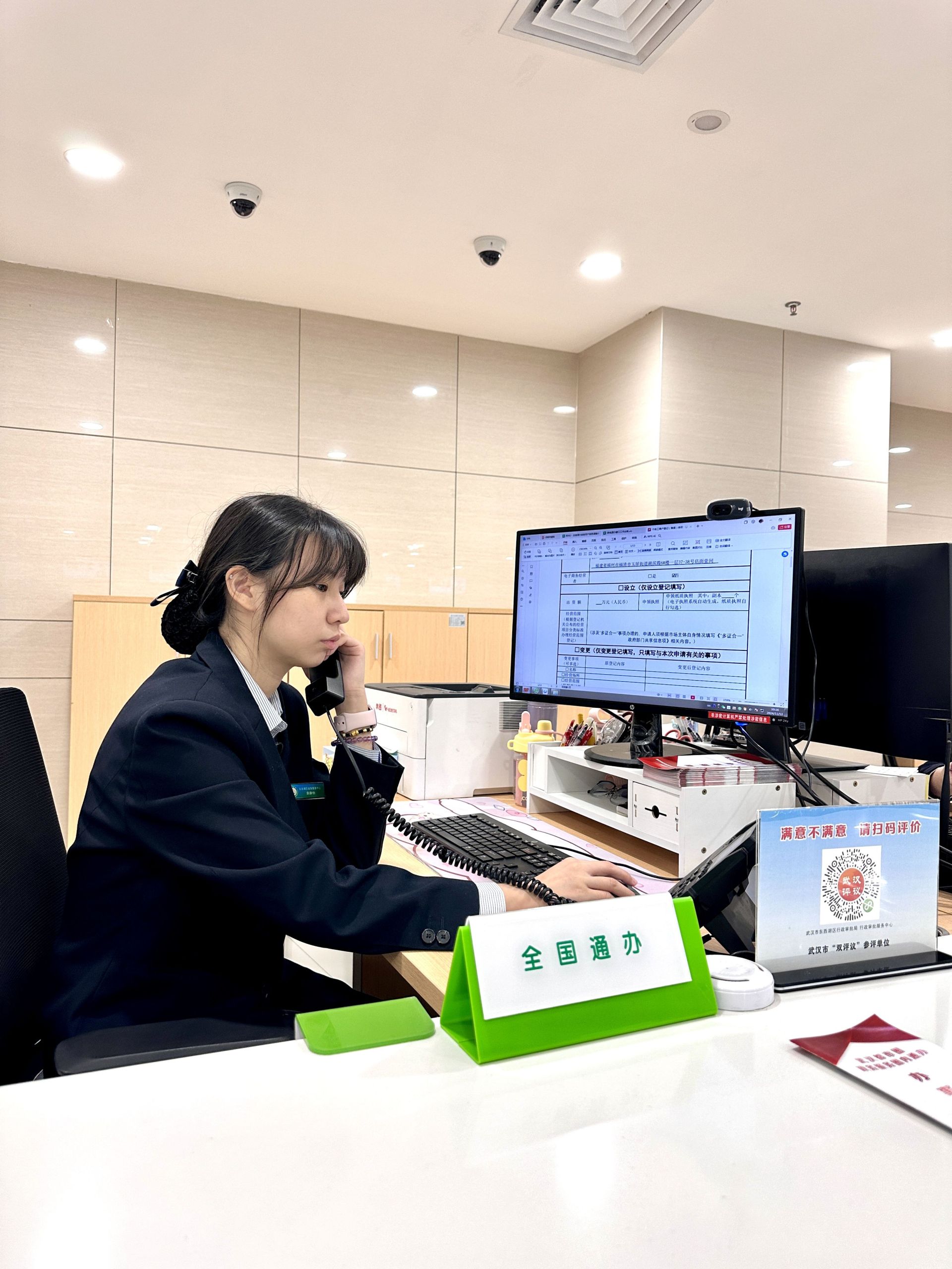 窗口工作人员正在电话了解办理情况