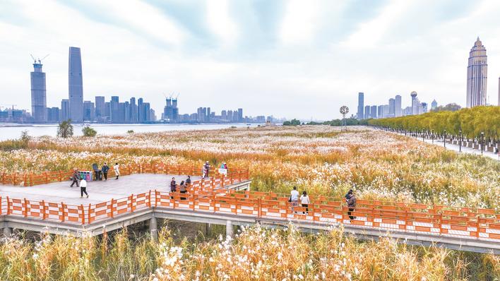 12月6日迎来大雪节气,汉口江滩芦苇荡也迎来最美时节。昨日,江城天气晴好,长江二桥下一大片芦花盛开,在落日余晖下,游客漫步其中,欣赏芦花胜雪的美景。楚天都市报极目新闻记者李辉摄影报道
