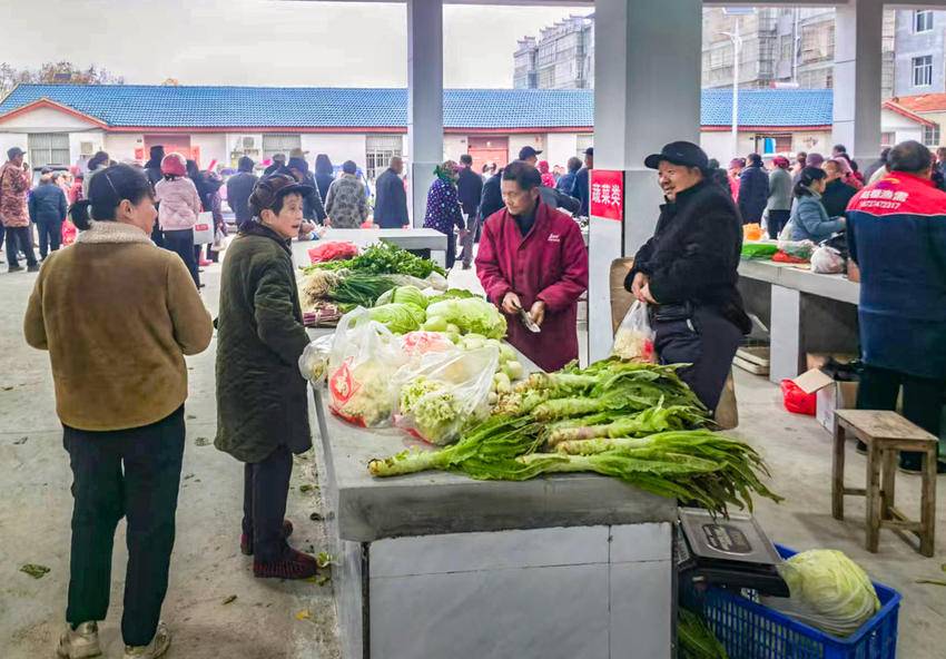 如今,新集贸市场干净整洁、宽敞明亮、交通便捷,为群众购销农特产品提供了场地,满足群众多样化需求。