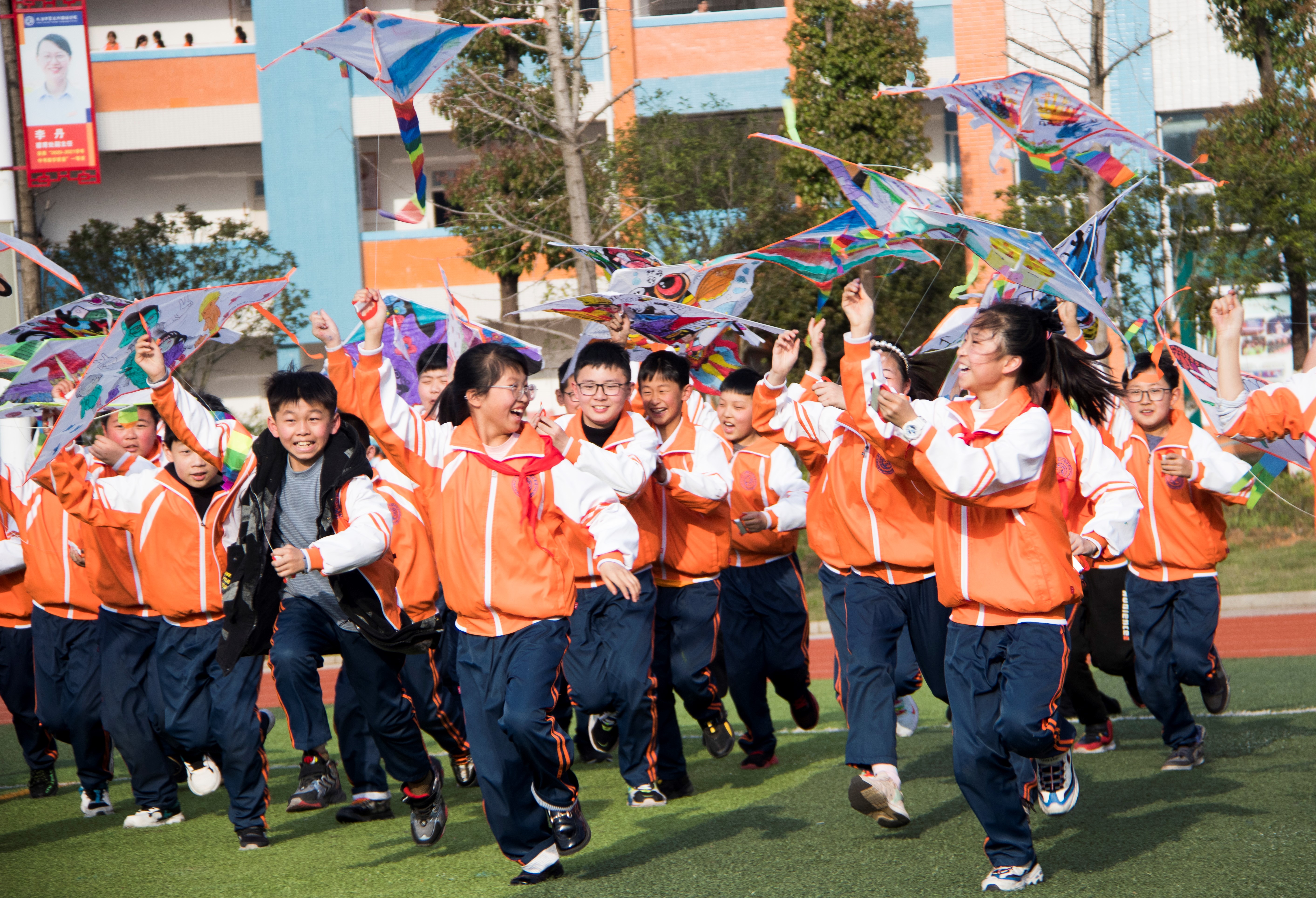 在标准化的田径场、足球场、篮球场上,孩子们尽情奔跑,成为一处处欢乐的海洋。