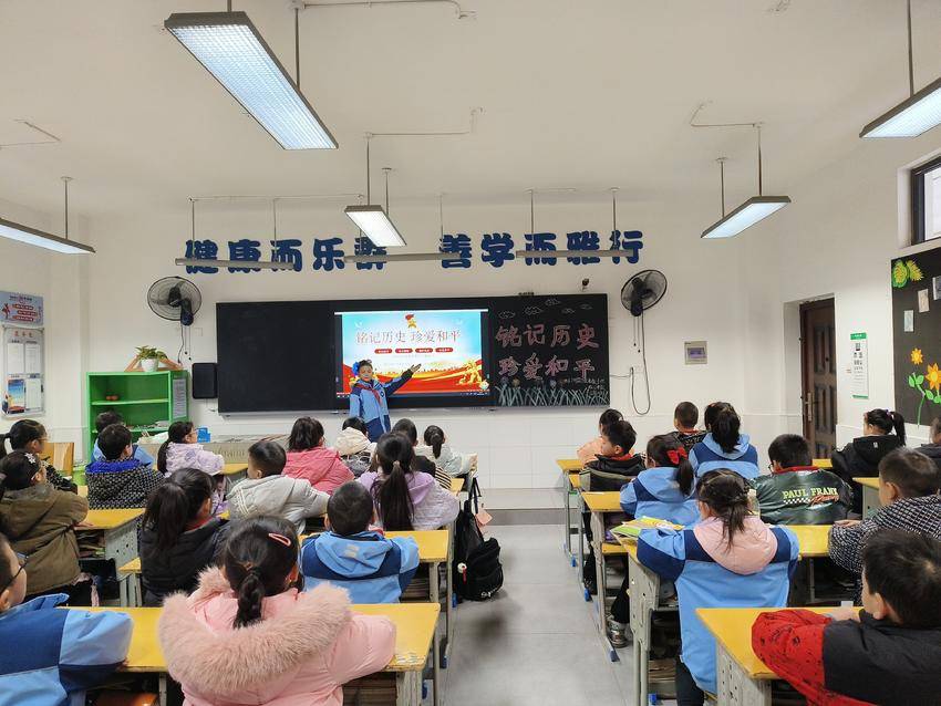 湖北日报客户端讯(通讯员江艺)12月10日,荆门市掇刀区名泉小学四(6)中队开展了以“铭记历史 珍爱和平”为主题的队会活动。