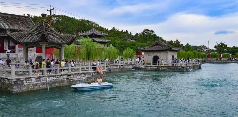 2023年7月,百泉湖景区里游客一睹“百泉复涌、水涌若轮”的风采。(当地摄影爱好者韩修平供图)