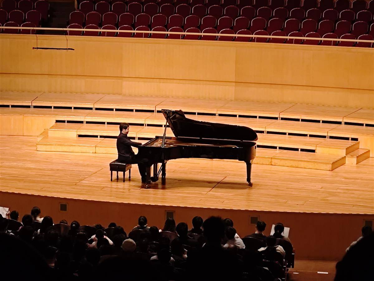 分享会上,中南民族大学的大二学生陆宇飞幸运地获得了一个和郎朗面对面交流的机会。五年前,他在网上看到郎朗演奏李斯特的名曲《钟》,从此深深爱上钢琴并作为兴趣爱好,高二那年把这首曲子反复听了几百遍。今天,他在偶像面前弹奏了这首对他意义重大的《钟》。