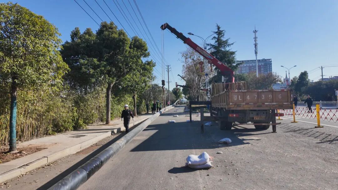 下午2点30分,510米长的管道已经被平铺在迎宾大道的一侧,工人们正在有序的推进管道入地工作。该项目预计在16日晚上10点可以完成跨河贯通,项目投入运行后,管道供气流量可达10万方/日。