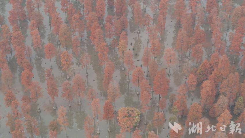 放眼望去,万杉红遍,层林尽染,宛如一幅色彩浓郁的油画,在新洲大地之上徐徐展开。今年的12月-1月是这片池杉林的最佳观赏期,趁此良辰美景,快来涨渡湖湿地森林公园亲身领略这片池杉林的独特魅力吧!
