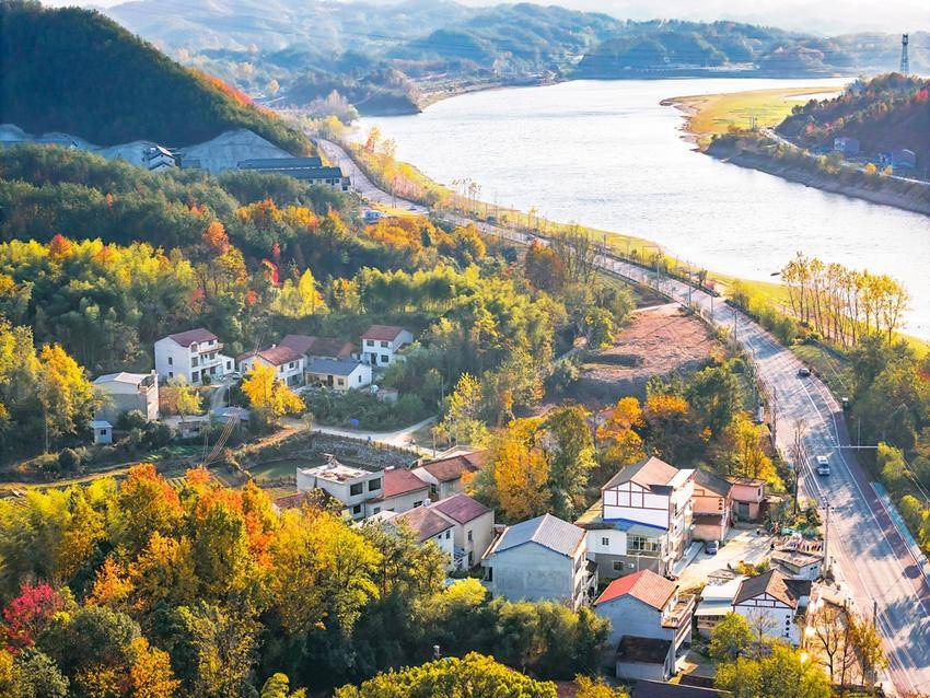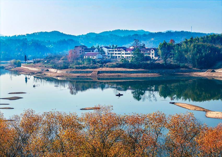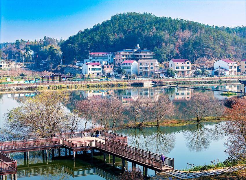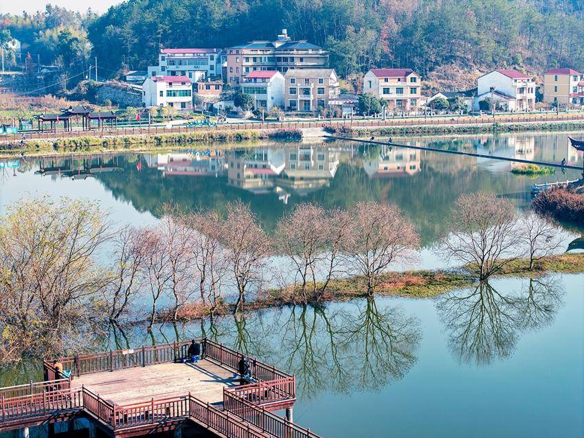 初冬时节的湖北省黄冈市英山县将军山村,湖水与青山、村庄等相映成画,构成一幅和美的生态山村画卷。