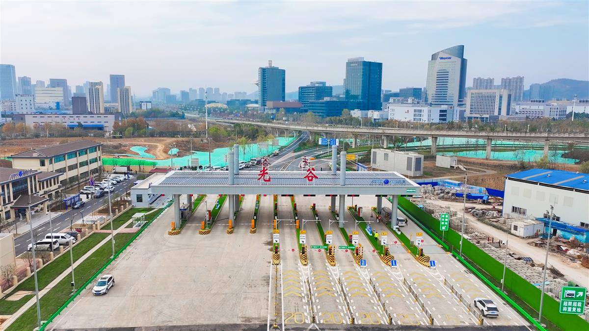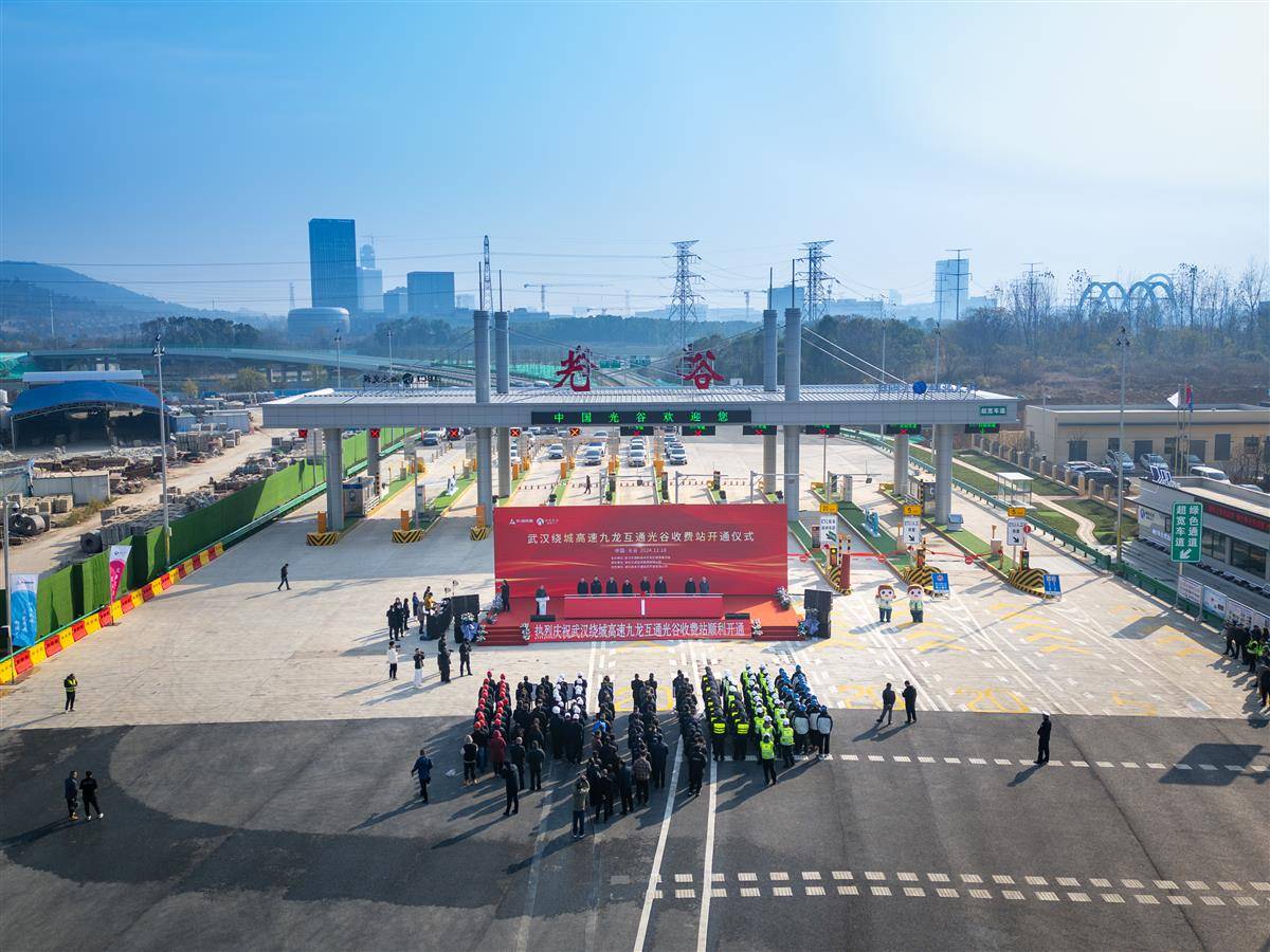 崭新的收费站上方,红色“光谷”两字格外醒目。该站共设置5进6出11条车道,安装4台收费机器人,11条车道全部可ETC通行,其中1条为潮汐车道,预计通行效率提升20%。离收费站不远处,可见中建三局总部、联通大楼、小米大楼等建筑。