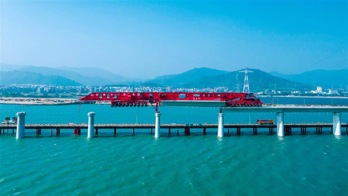 “昆仑号”运架一体机在福厦高铁架设高铁箱梁。