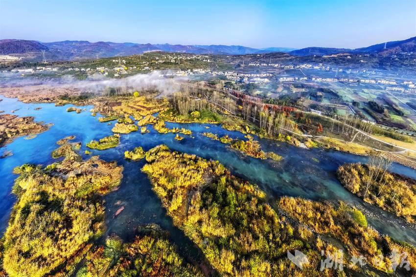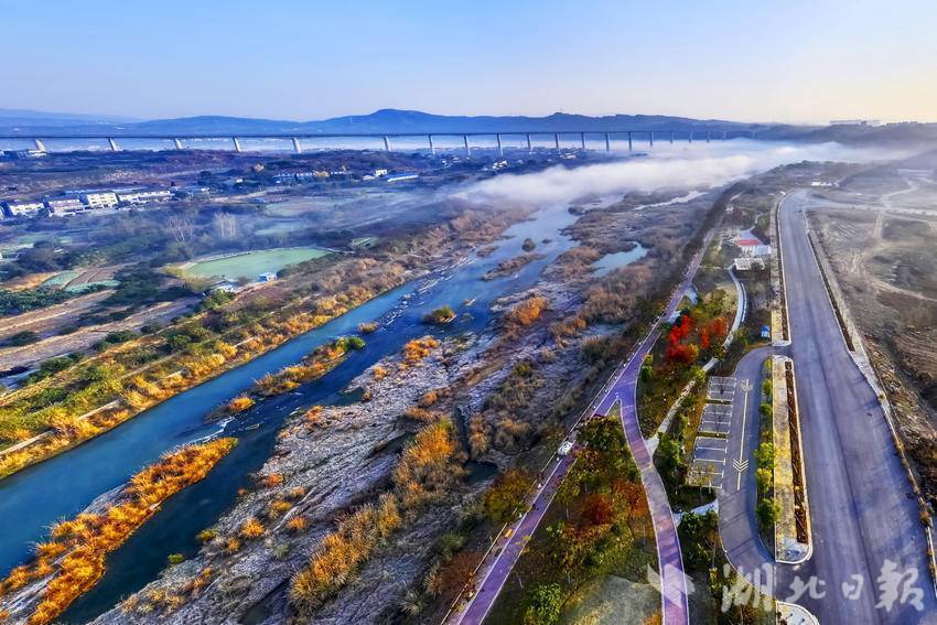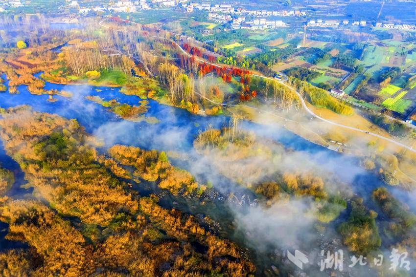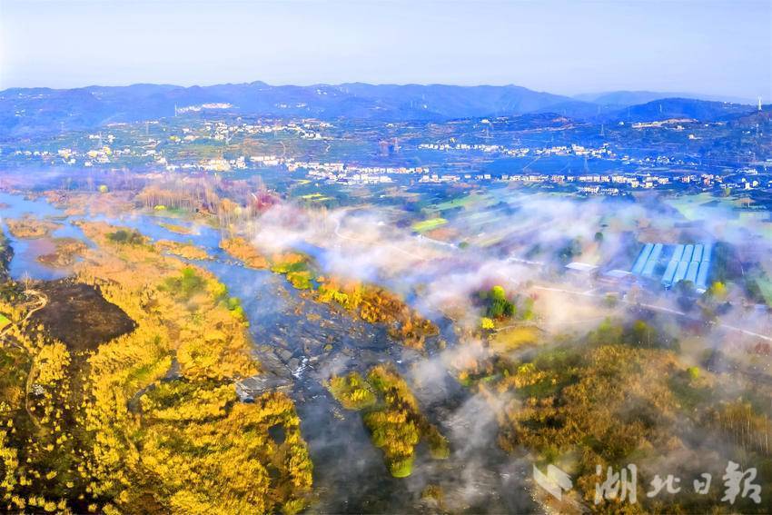 湖北日报客户端讯(通讯员张国荣、望作信)12月16日,宜昌市夷陵区黄柏河湿地公园山水合围,云雾缭绕下层林尽染,斑驳的阳光洒满河道,在冬日里呈现养眼迷人的生态湿地景观。