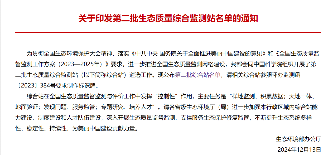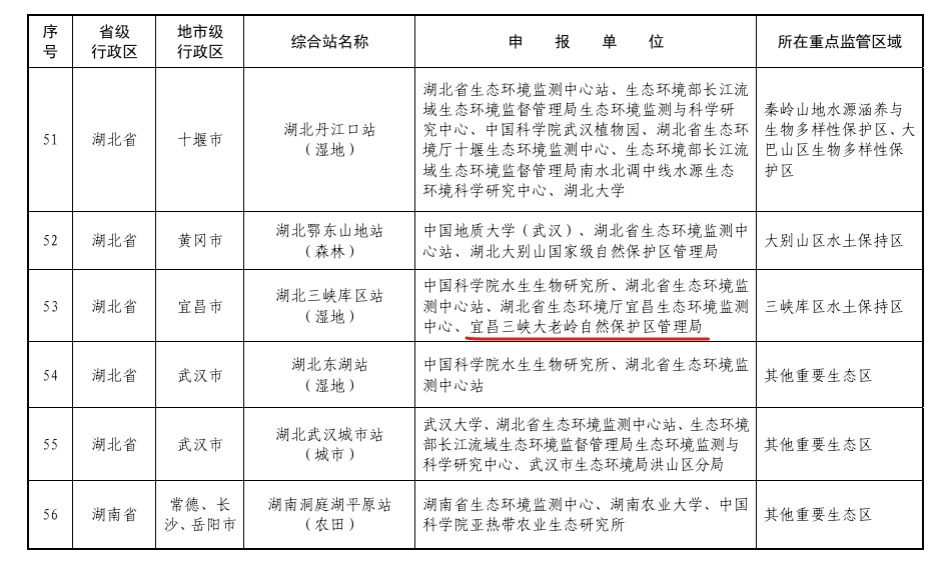 湖北日报客户端讯(通讯员林郁柳)近日,生态环境部办公厅发布了《关于印发第二批生态质量综合监测站名单的通知》,公布了新一批生态质量综合监测站名单,由中国科学院水生生物研究所、湖北省生态环境监测中心站、湖北省生态环境厅宜昌生态环境监测中心和宜昌三峡大老岭自然保护区管理局联合建设的湖北三峡库区站(湿地)位列其中。