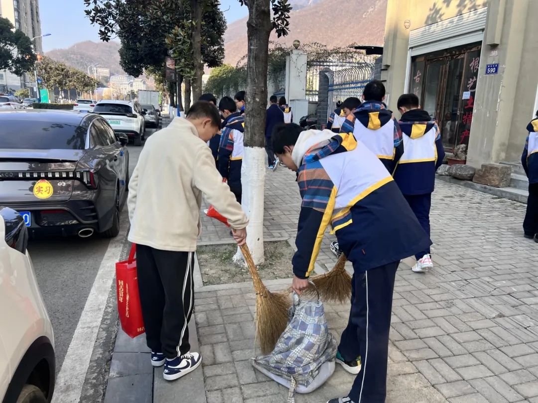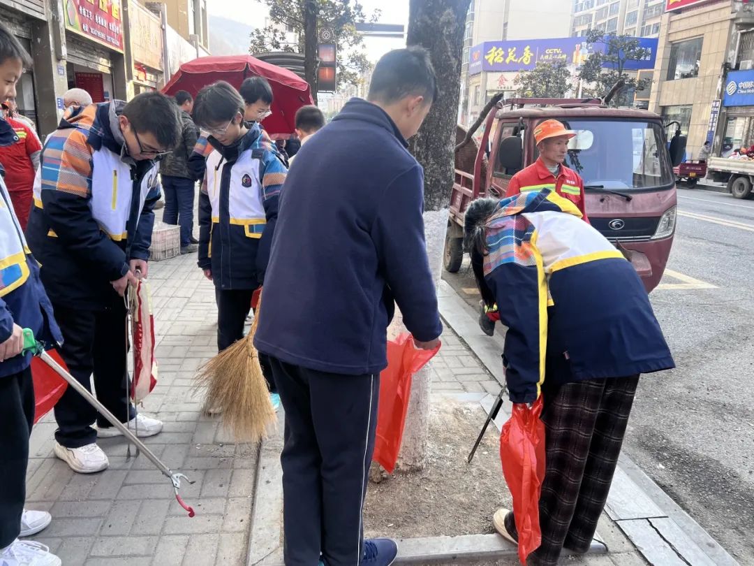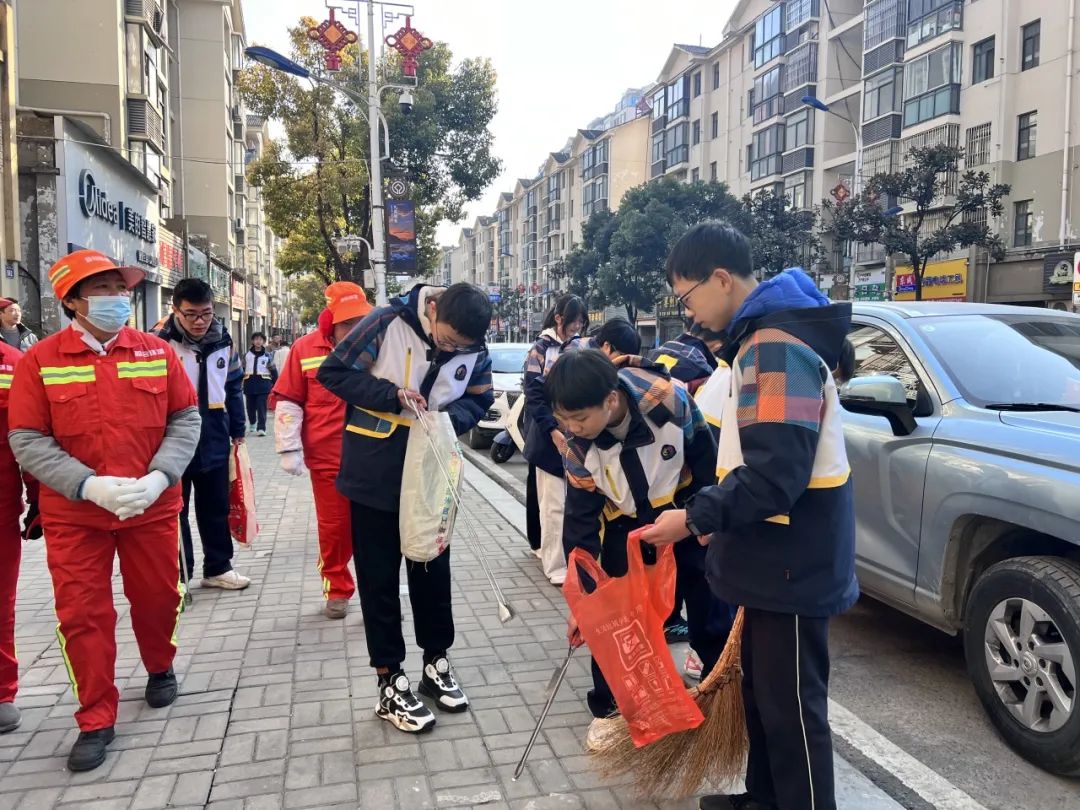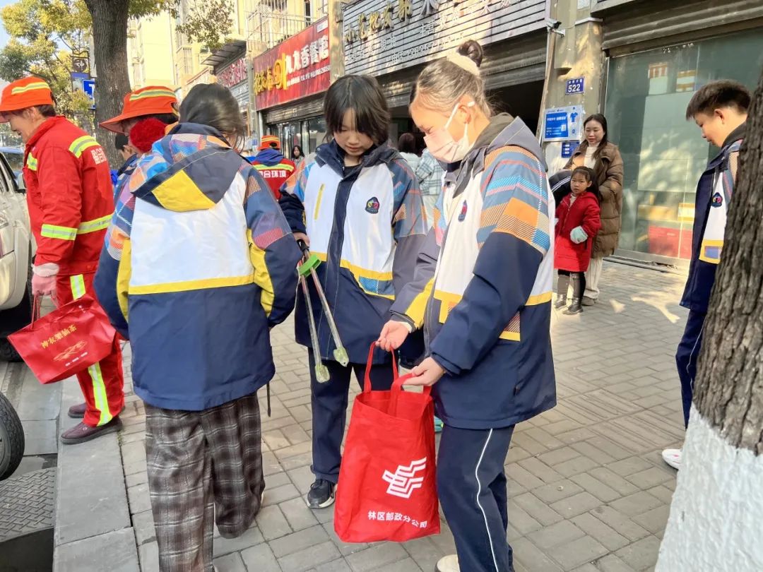 冬至当天,学生们早早到达指定地点,与环卫工人们一起开始了清扫工作。在环卫工人的讲解后,学生们开始有模有样地清扫起来,他们有的负责扫地,有的负责捡拾垃圾,还有的帮助环卫工人推垃圾车。在活动中,学生们表现出了极高的热情和认真的态度,用实际行动向劳动者致敬。