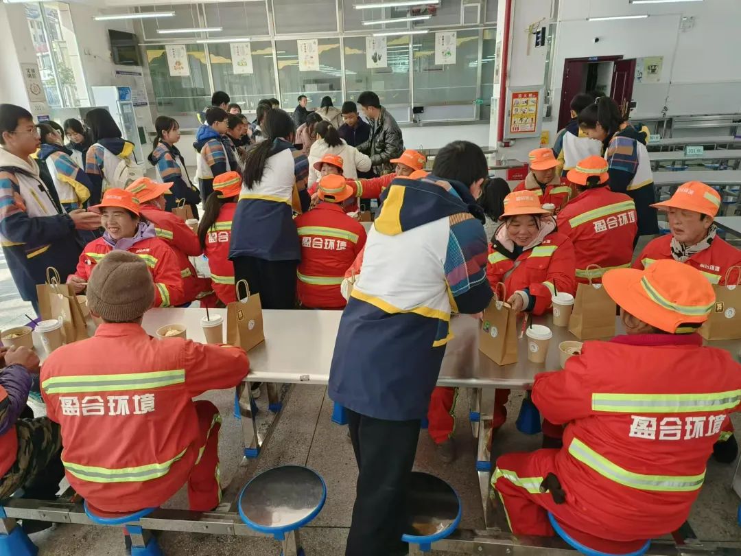 环卫工人是城市不可或缺的守护者,他们用辛勤的汗水维护着城市的整洁与美丽。在2024年冬至到来的时候,创新实验学校802班全体师生特别组织了一场“暖心姜茶 姜爱传递”的暖冬活动。他们希望通过一杯温暖的姜茶、一碗热乎的水饺,向那些在清晨的寒风中就开始一天辛勤劳作的环卫工人,表达敬意和感谢。同时呼吁更多人关注和尊重环卫工人的辛勤劳动。