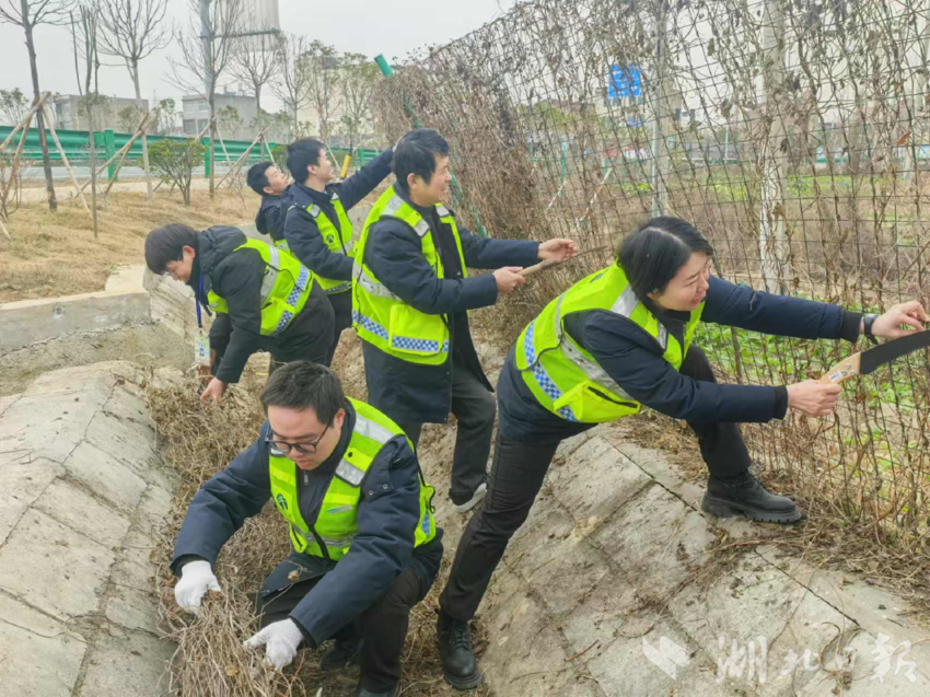 湖北日报客户端讯(通讯员宋鹤希、邓文捷)从12月16日开始,孝洪高速中洲、垌冢收费站出口连接线旁,每天都会出现一群身穿黄色反光服的年轻人,他们分工明确,有的用垃圾钳捡边沟、边坡的塑料袋、矿泉水瓶,有的用手锯和镰刀清除隔离网旁的杂树和藤蔓,有的用铁锹和扫把在清洁边沟的积尘和杂草。附近的居民打趣道:“你们收费站转行当养护工了!”