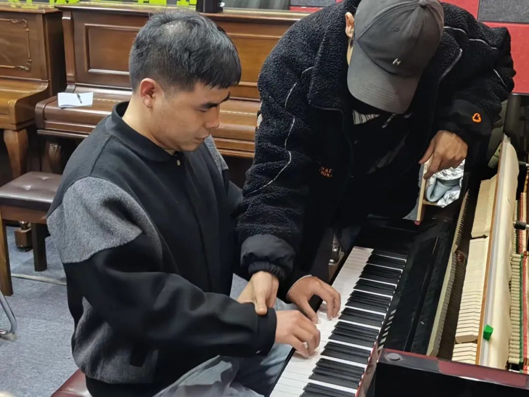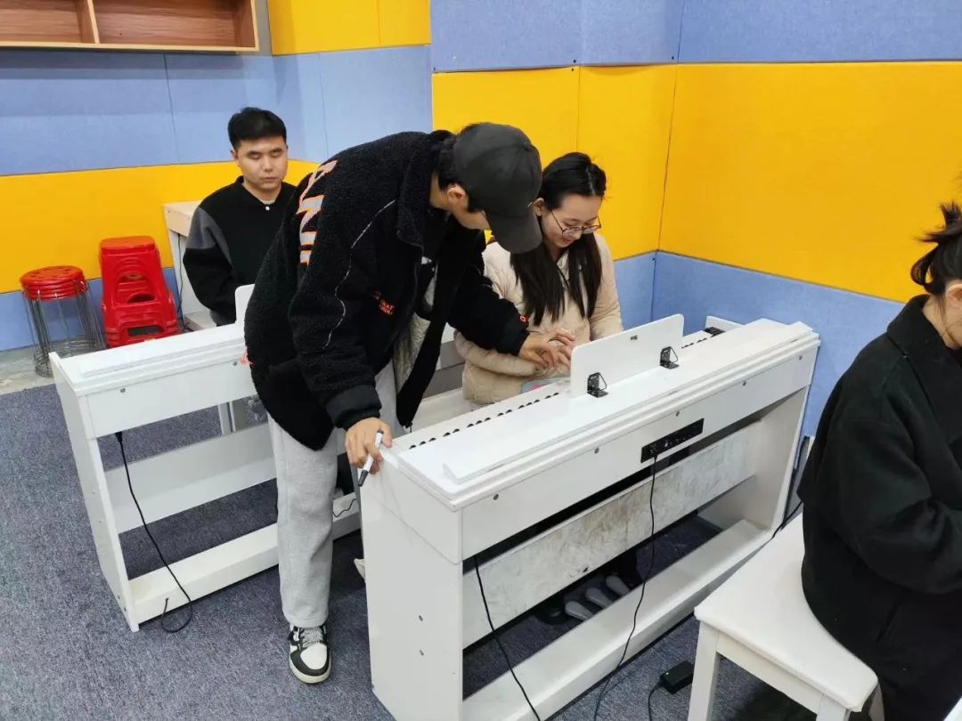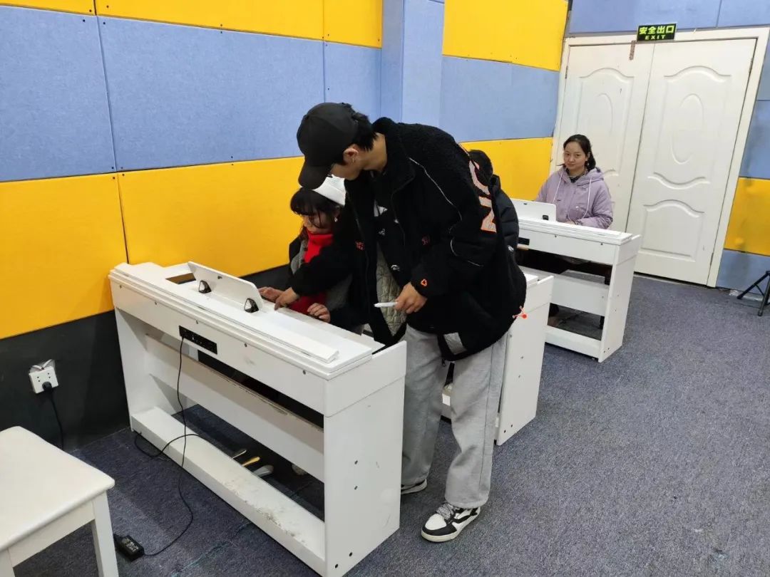 讲解完乐理知识后,老师耐心地为学员们做示范,并指导学员弹奏简单易上手的乐曲,共同感受琴键在指间跃动,音符流淌成绚烂乐章的美妙。