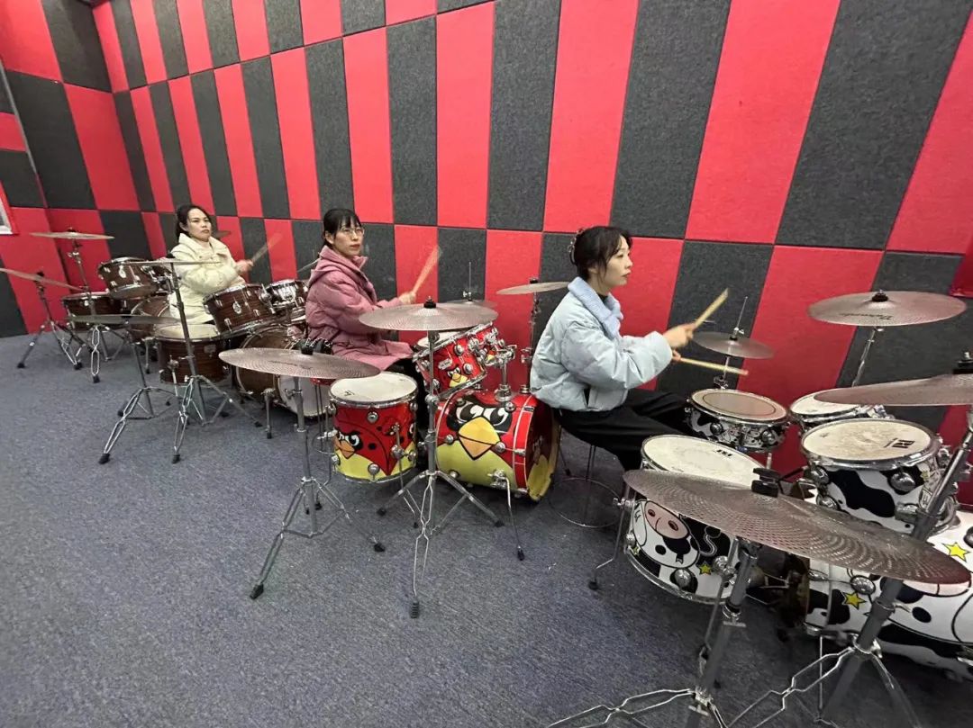 在老师的指导下,学员们很快找到了感觉,进入了角色,挥动着手中的鼓棒,感受“动次打次”的节奏音浪,体验到了打击乐器的乐趣和成就感。
