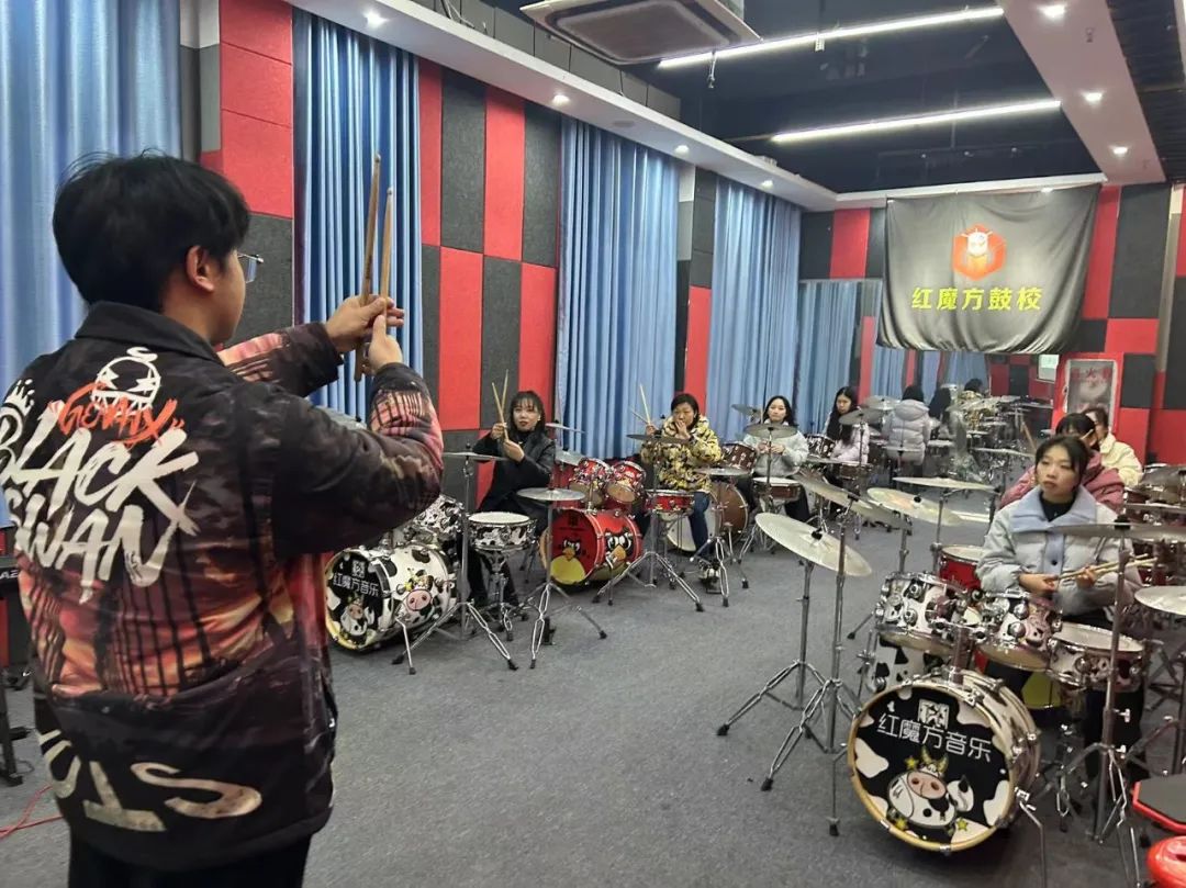 活动现场,老师首先向大家介绍了架子鼓的组成和各个部分的名称,并示范敲鼓的正确姿势和手法。深入浅出的讲解,让大家逐渐掌握了架子鼓的基本动作要领。