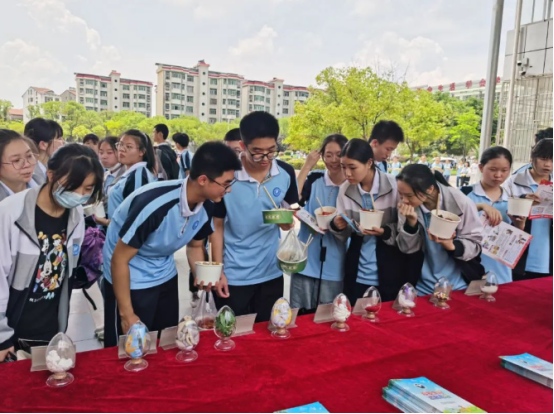 在精心布置的毒品仿真模具前,同学们捧着中餐,仔细查看毒品的模样;在禁毒知识展板前,一批批同学驻足凝视,认真了解毒品的危害。参加禁毒知识宣传的工作人员借机发放禁毒宣传册,同学们把禁毒宣传册小心珍藏,以便闲时阅读。