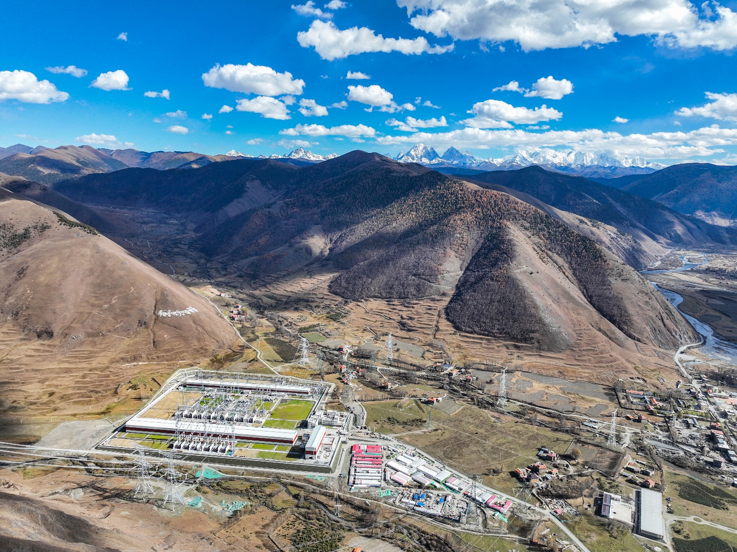海拔3450米的甘孜1000千伏变电站,汇集甘孜地区水、风、光清洁能源送往成渝负荷中心。(赖俊吉 摄)