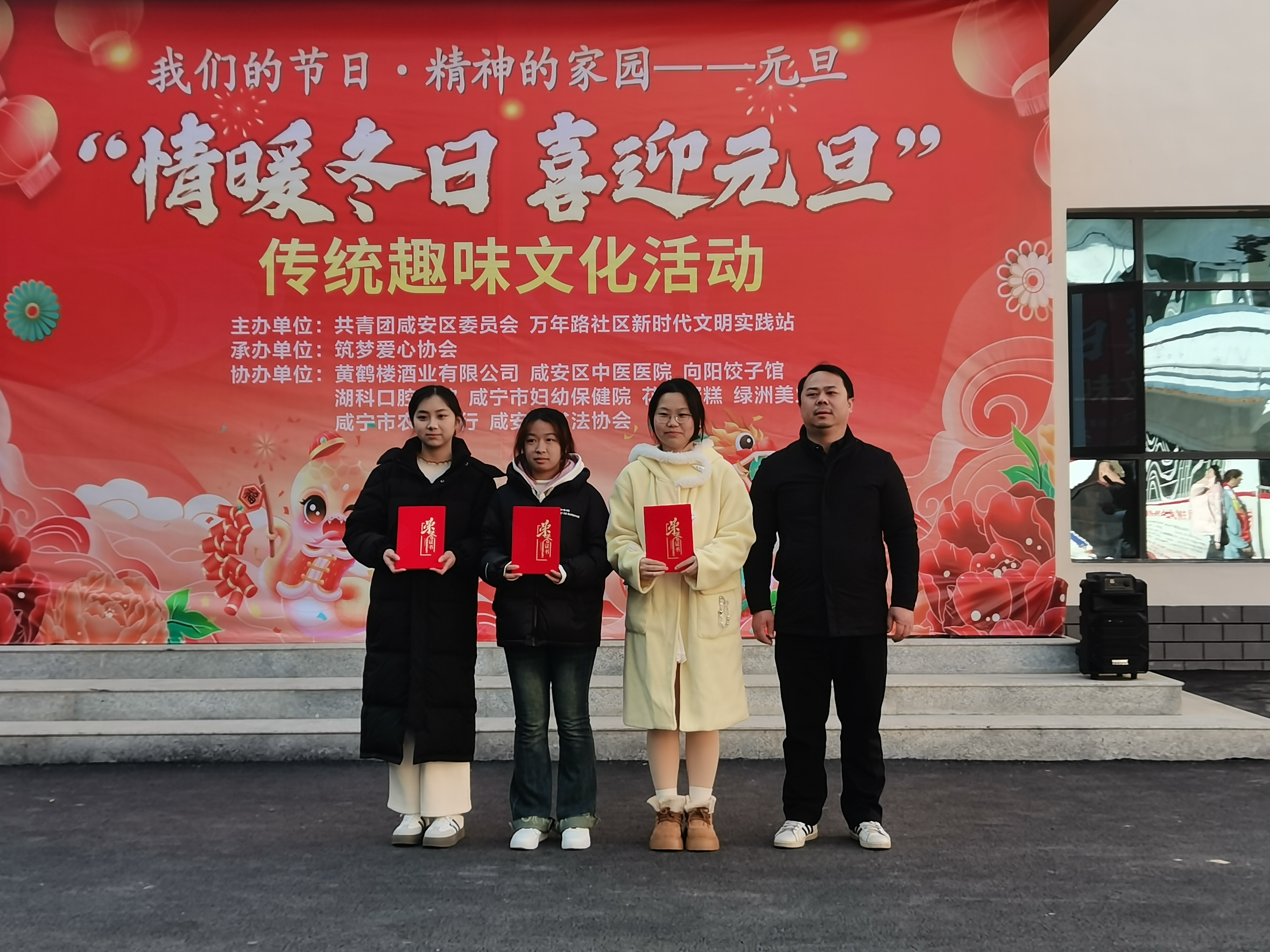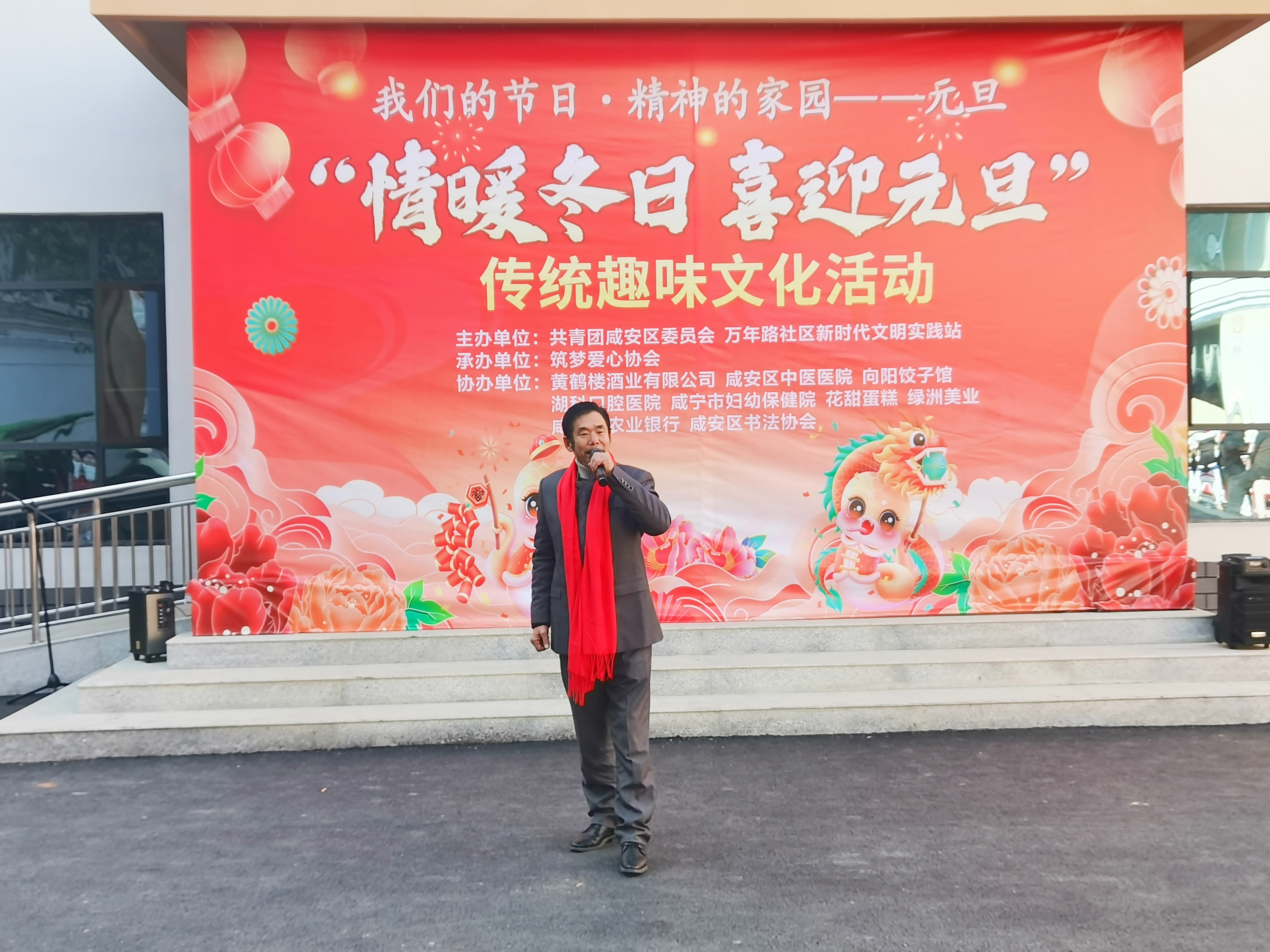 湖北日报客户端讯(通讯员蒋旗、陈柱、胡梦轩、方钰华、黄章华 )为了让社区居民感受到浓浓的节日氛围,增进邻里情谊,提升社区的凝聚力与幸福感,12月28日,团区委联合万年路社区新时代文明实践站、筑梦爱心协会、区书法协会以及黄鹤楼酒业有限公司等爱心企业共同举办了一场以“情暖冬日 喜迎元旦”为主题的传统趣味文化活动,为社区居民们带来了一场欢乐祥和的节日庆典。