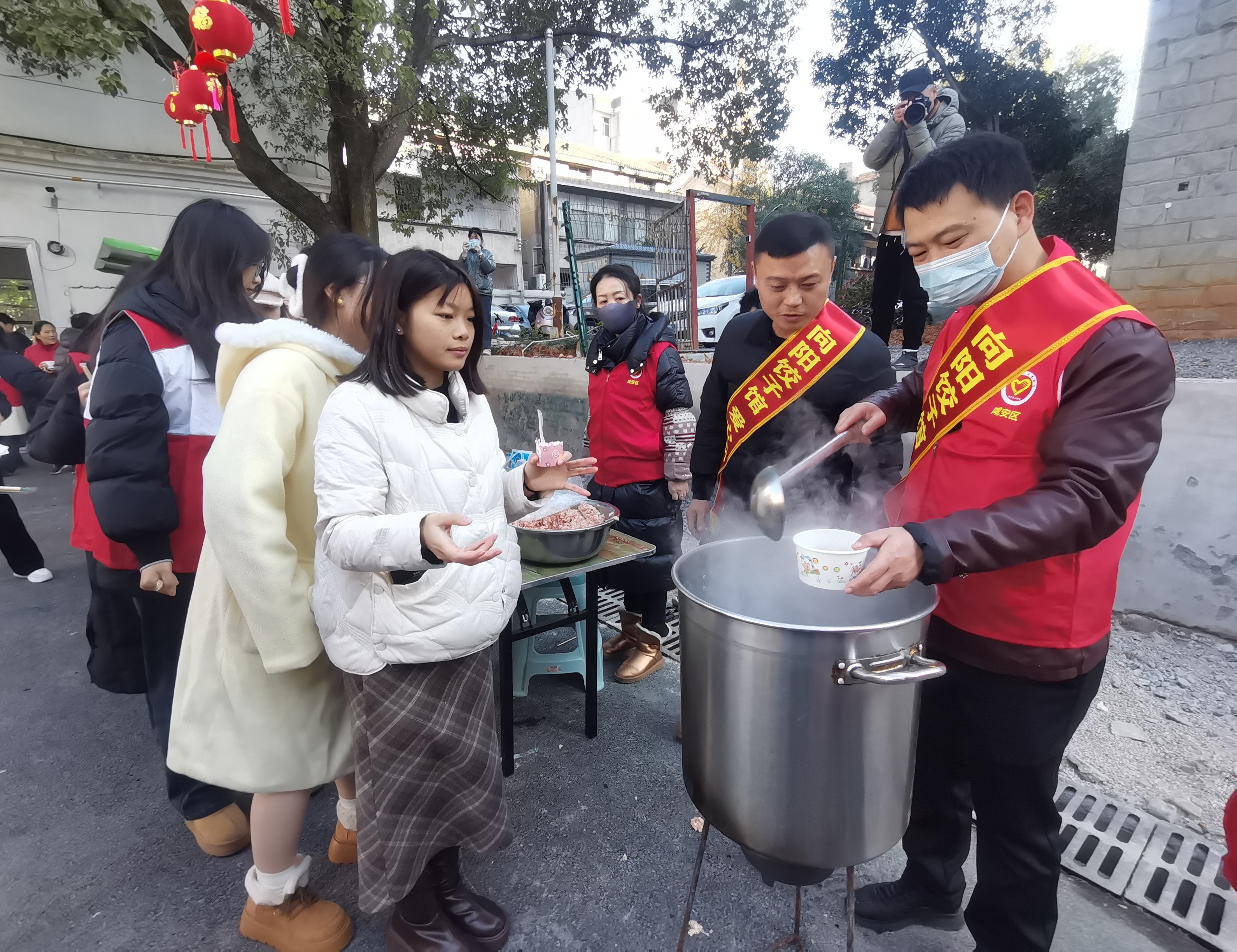 活动现场,由向阳湖饺子馆带来的美食制作——福瑞金球,颗颗肉丸在锅中翻滚,不断发出“咕噜咕噜”的响声,整个院子里都弥漫着香味。市妇幼保健院、区中医医院、湖科口腔医院、花甜蛋糕、绿洲美业、咸宁市农业银行还在现场设置了多个摊位,提供健康义诊、便民义剪、书写春联等服务,同时宣传反电信诈骗、平安建设、文明养犬、扫黄打非、垃圾分类等知识,为居民们送上一份实用的生活指南,增强了居民们的安全防范意识与文明素养。