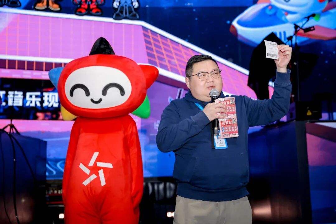 沙龙讲师邀请歌迷们查看自己手中的体彩小礼品,告诉歌迷朋友们有部分的礼品上留有特殊符号,这些拿到特殊礼品的“幸运儿”被邀请上台,进行了一场体彩顶呱刮游戏互动体验。歌迷们奇思妙想的刮票方式引得现场笑声连连,有的歌迷甚至捡起了身旁的扳手作为工具刮起彩票。最后,沙龙讲师为胜出的歌迷送上了一份体彩台历,祝愿歌迷在即将到来的2025年“苹苹”安安。