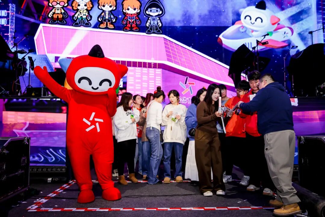 活动当日,歌迷朋友们早早便来到了赤红音乐广场排起长队。湖北体彩极其富有动感的乐小星在场内格外炫酷,吸引途经的歌迷朋友们纷纷停下脚步与可爱的乐小星合照。每位参与歌友会的歌迷们都会领到“一颗苹果”,以及湖北体彩提供的精美好礼。