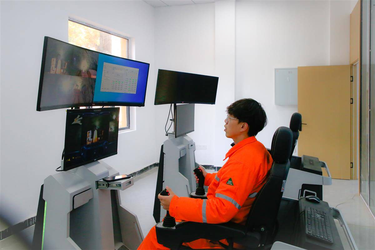 坐在中控室,职工操作电脑手柄,可实行井下作业。通讯员唐上游摄
