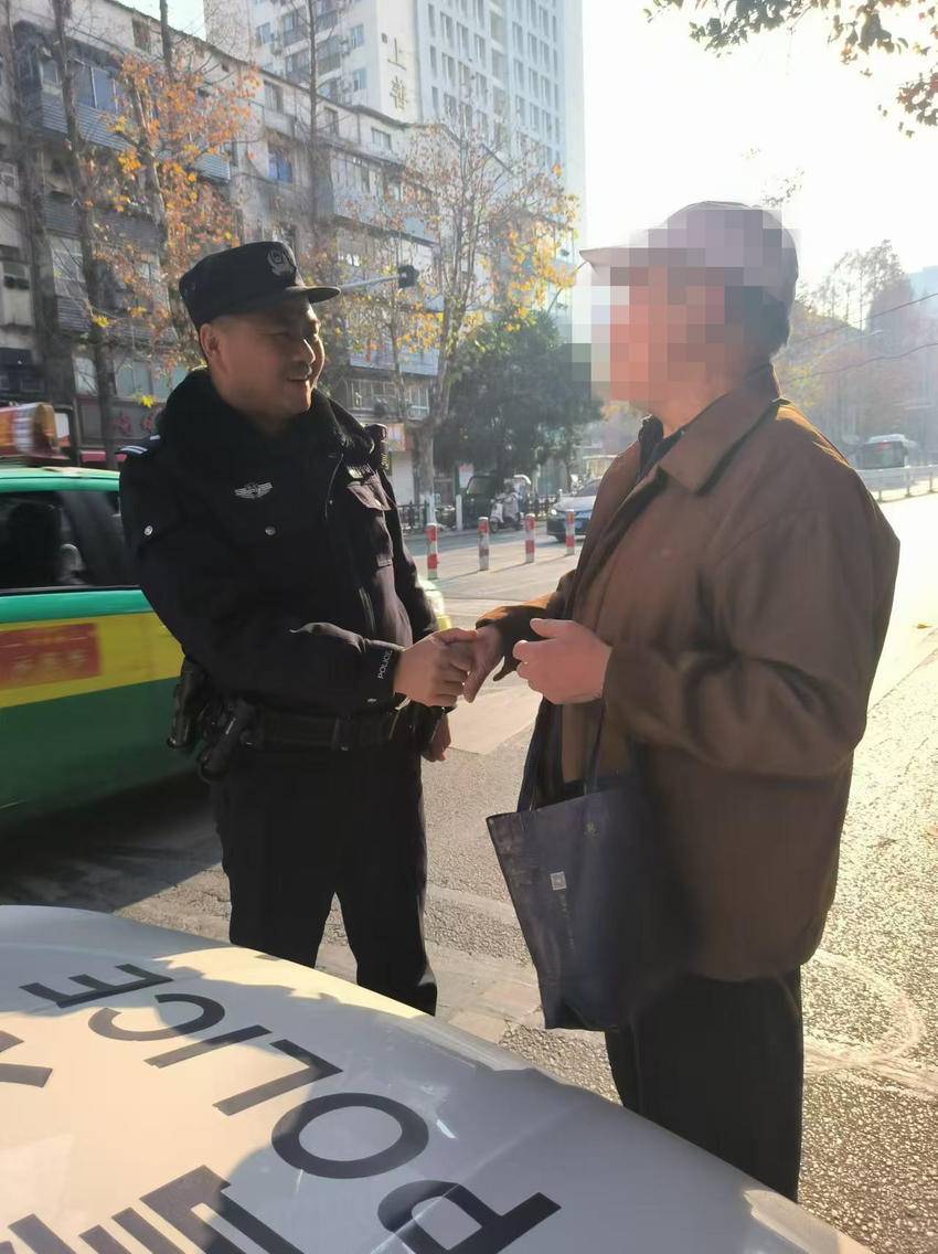 经过不懈的努力,民警与捡包男子取得联系,成功找回背包。随后,民警驱车前往康大爷居住的小区,将背包亲手交还给了他。康大爷确认包内物品完好无损后,激动地握住民警的手,连声感谢。
