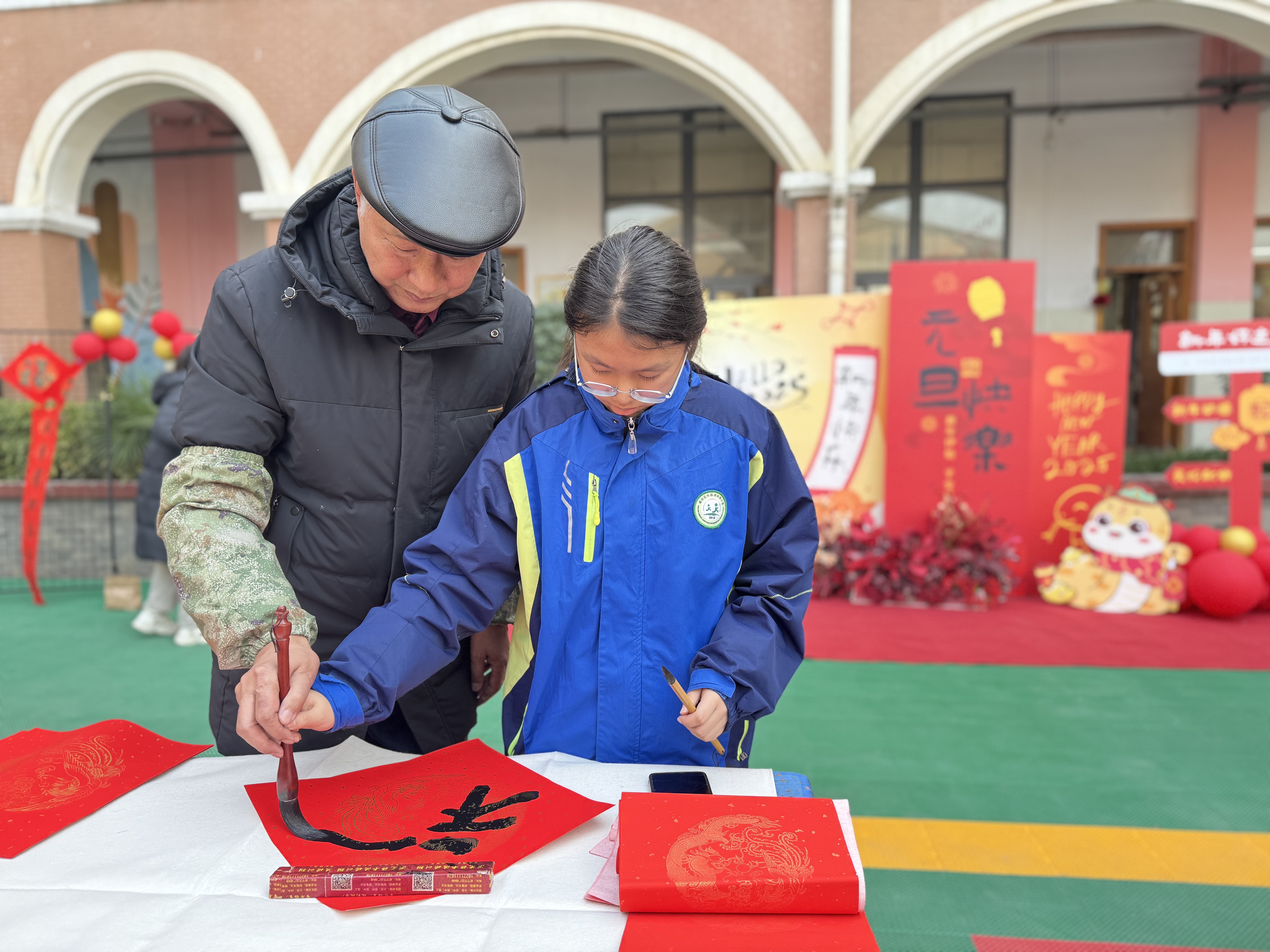 此次活动邀请书法家协会的书法家们和学校师生一起书写新年的祝福。书写完成的作品,化作新年使者,给全校各班送福,让福气满溢每个角落,把这份来自学校的温暖祝福传递给每一位师生。