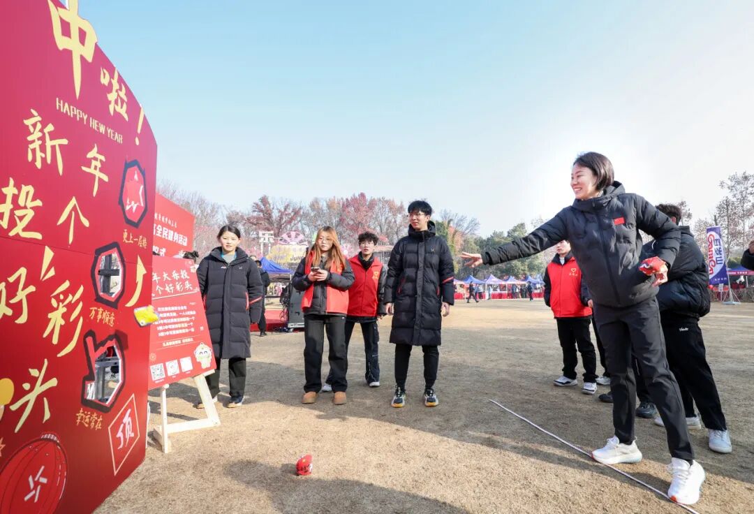 除了体彩嘉年华,现场还设有民俗体验区和运动项目体验区等。非遗老师现场展示“剪窗花、书写对联、制作糖人”等技艺,选手们可以挥毫泼墨,在老师的指导下,亲手书写新春对联,将新年的美好祝福融入每一笔之中。足球射门、激光枪、桌上冰壶、飞盘等体育项目现场体验,传递健康生活理念,让人们在享受传统运动乐趣的同时感受潮流趣味体育的魅力。