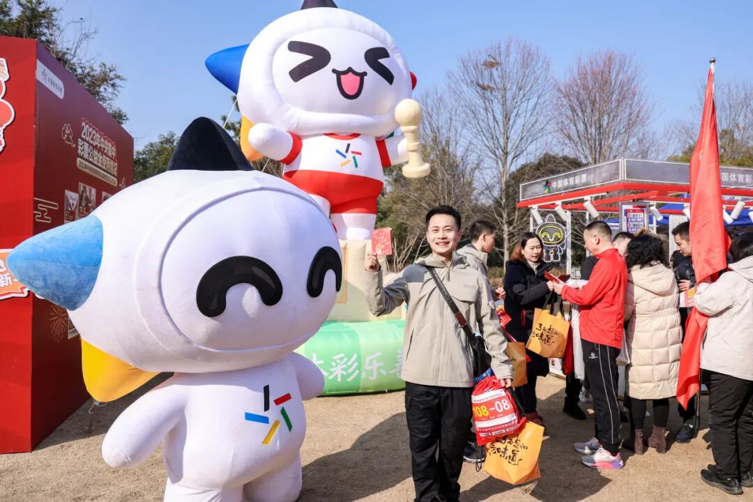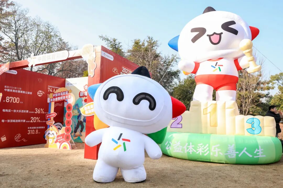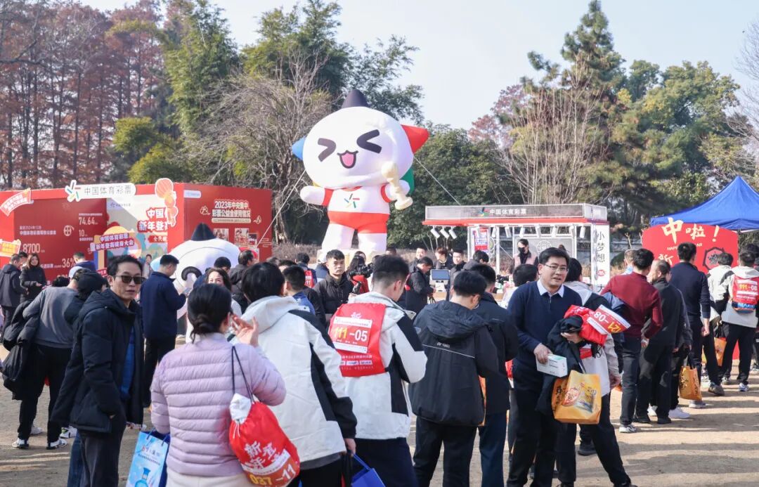 新年版大乐投游戏前面排起了长龙,每个人满怀期待地排队,嘴里念叨着“我要中!投个新年好彩头”。选手们还可凭登高号码牌领取一份乐小星的新年幸福祝福,一张2025年第一期的大乐透。