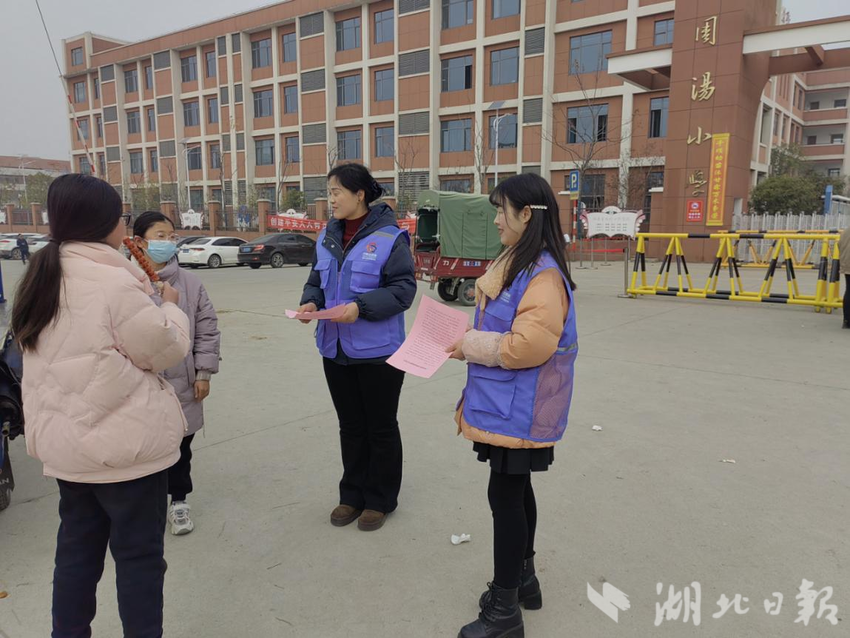 湖北日报客户端讯(通讯员 姜陈星)1月2日,正值华容镇周汤小学学生的午餐时间,镇妇联巾帼志愿者与镇团委的成员们来到了周汤小学门口,开展了一场以“垃圾分类、爱护环境”为主题的宣传活动。