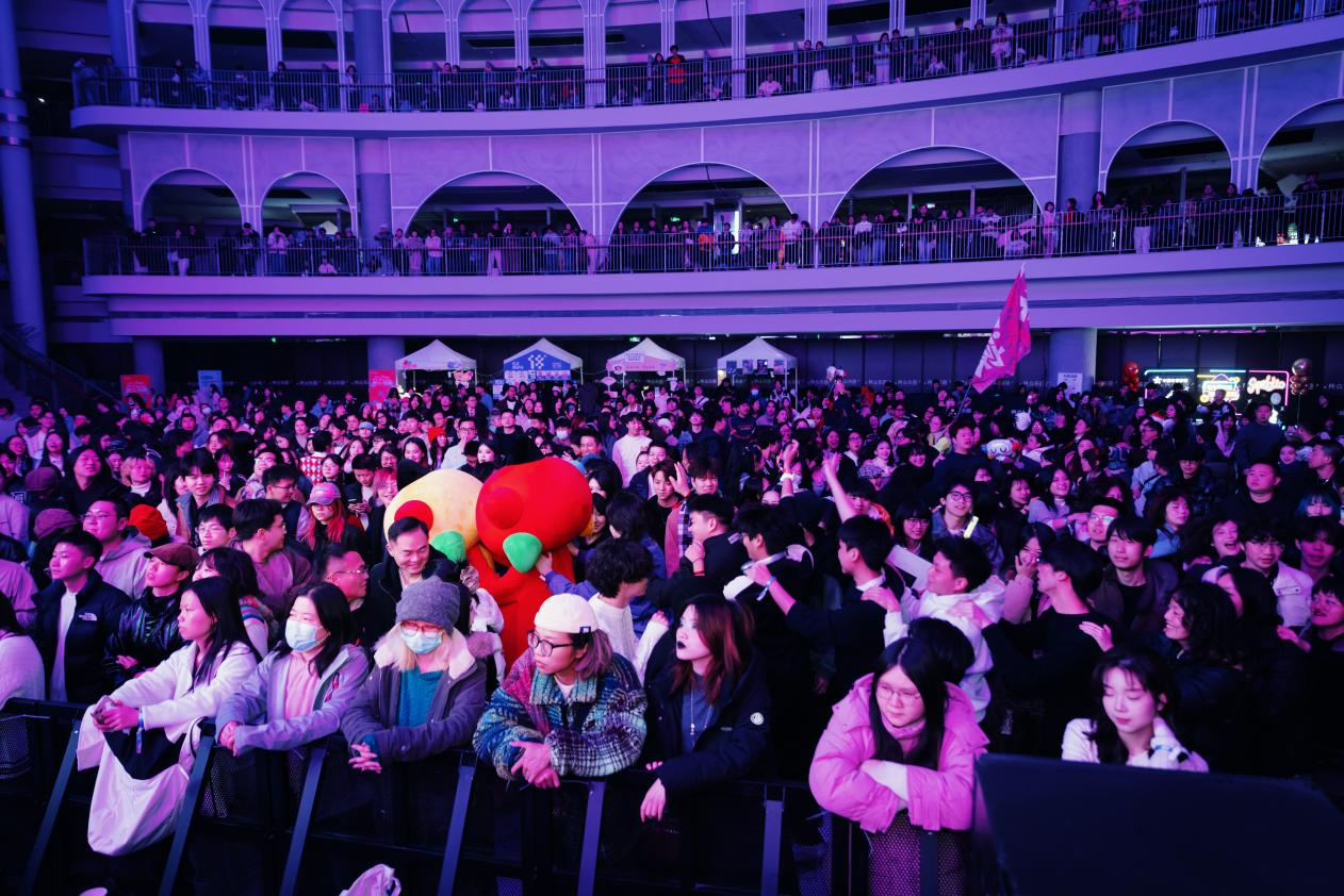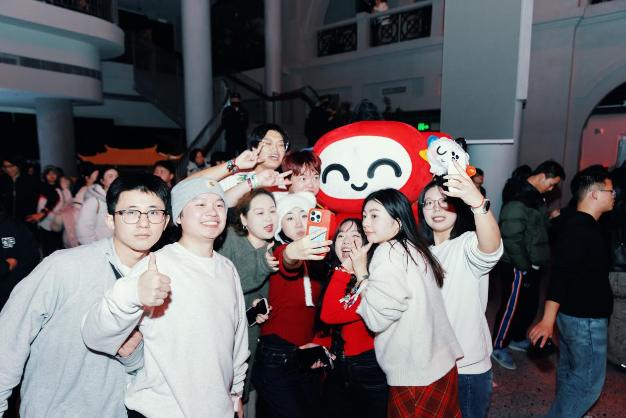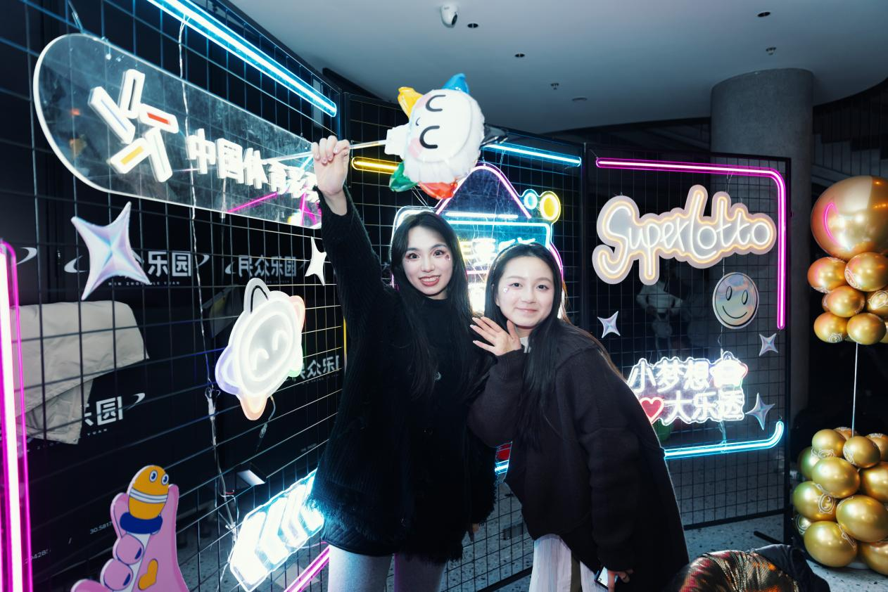 活动于晚上6点正式开始,参与者们佩戴着定制手环,有序进入乐园大堂。这里被聚光灯和电子荧屏装点得光彩夺目,为参与者们营造了一个充满现代感的娱乐空间。电子鼓和电吉他的音乐节奏引领全场舞动,体彩吉祥物乐小星在人群中穿梭,与参与者们进行互动,共同享受音乐带来的愉悦。