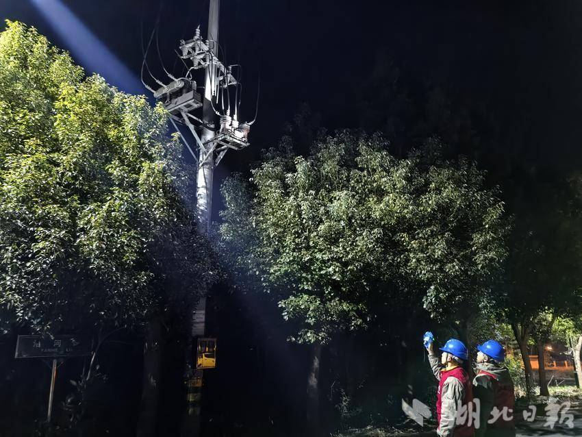 夜幕降临,丁家营供电所值班人员便整理好装备,兵分两路,奔赴各自负责的区域。他们手持红外测温仪,仔细地对变压器、刀闸等关键电力设备进行测温检测。工作人员沿着线路逐级杆塔巡视,认真查看设备的外观有无异常,聆听有无放电声,不放过任何一个可能存在隐患的角落。