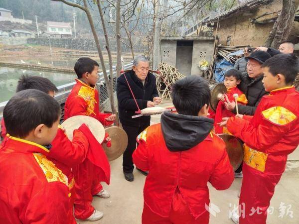 湖北日报客户端讯(通讯员 周勇)1月6日中午,丹江口市官山镇九年一贯制学校锣鼓队少年,登门拜艺古稀老人——吕家河民歌项目国家级代表性传承人侯同贵,求取剪剪花锣鼓敲打技法。