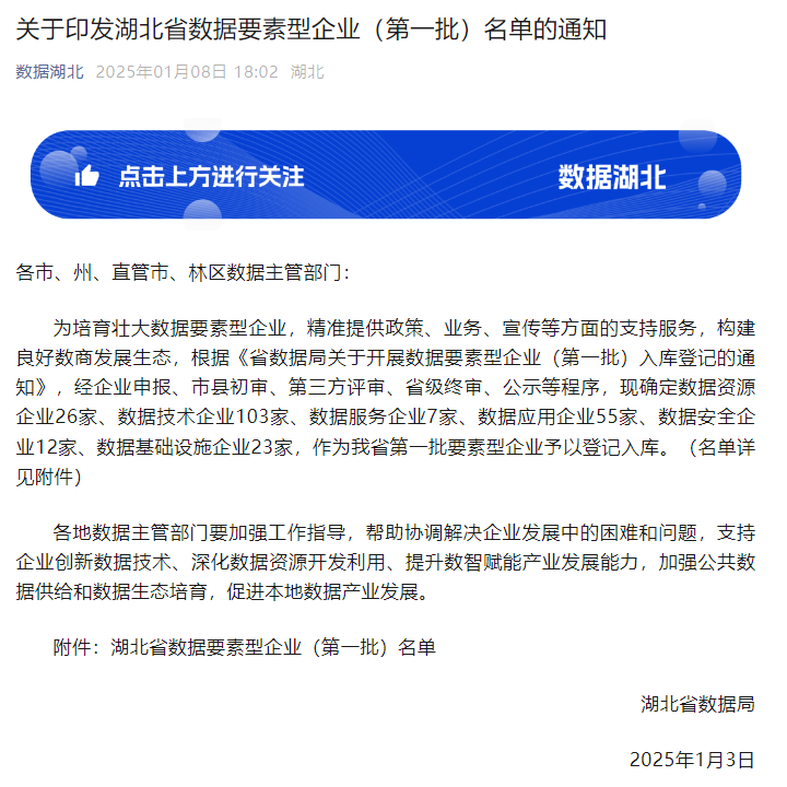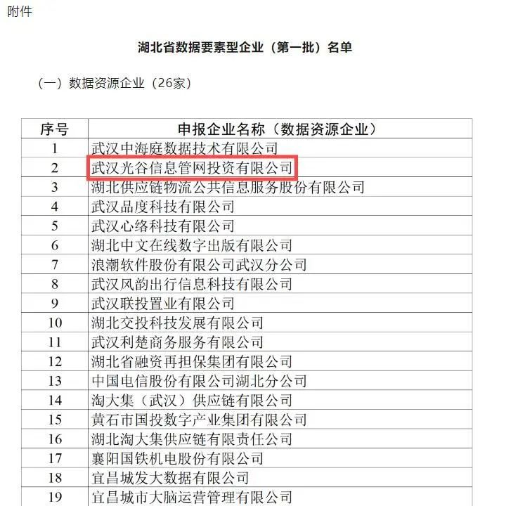 近日,省数据局正式发布全省首批数据要素型企业名单,光谷建设公司子公司光谷信息管网公司作为数据资源企业之一成功上榜。