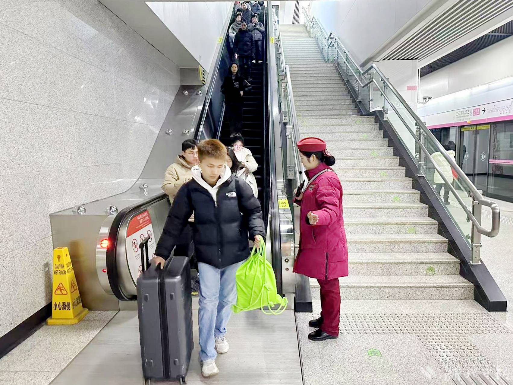 连日来,紧邻高校5号线中医药大学站、红霞、黄家湖(武科大)等高校周边站,迎来首波返乡学生客流小高峰,相关车站在高峰时段设置隔离栏杆、增加工作人员进行疏导,车站还准备有行李打包用的扎带、宽胶带等;阳逻线武生院站、阳逻站,在学生进站小高峰时段增设“服务引导岗”,疏导返乡乘客有序、快速通行。